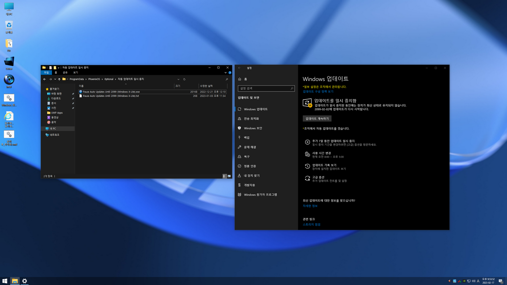 - 자동 업데이트 비활성화(2099년까지 업데이트 일시 중지)