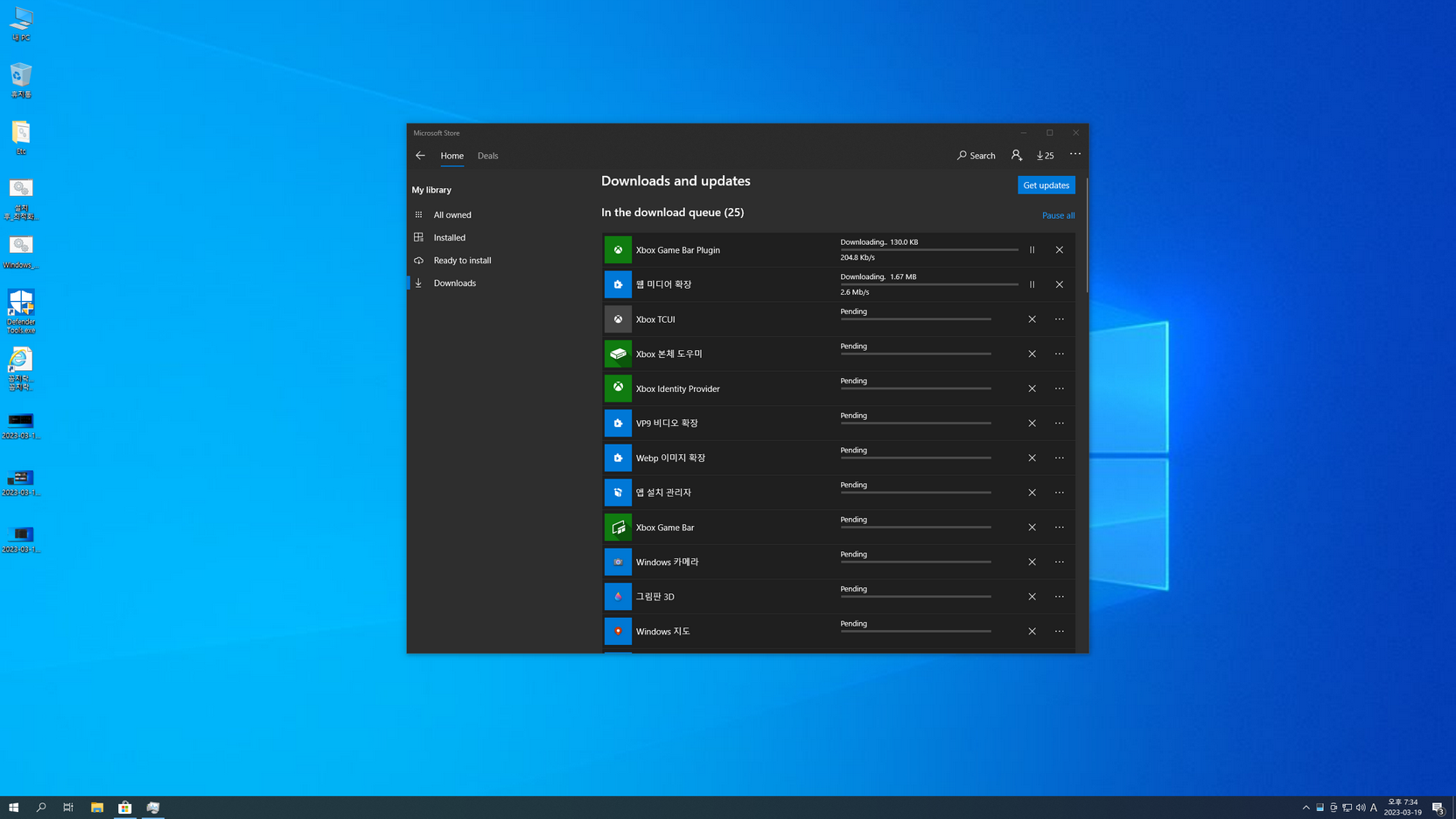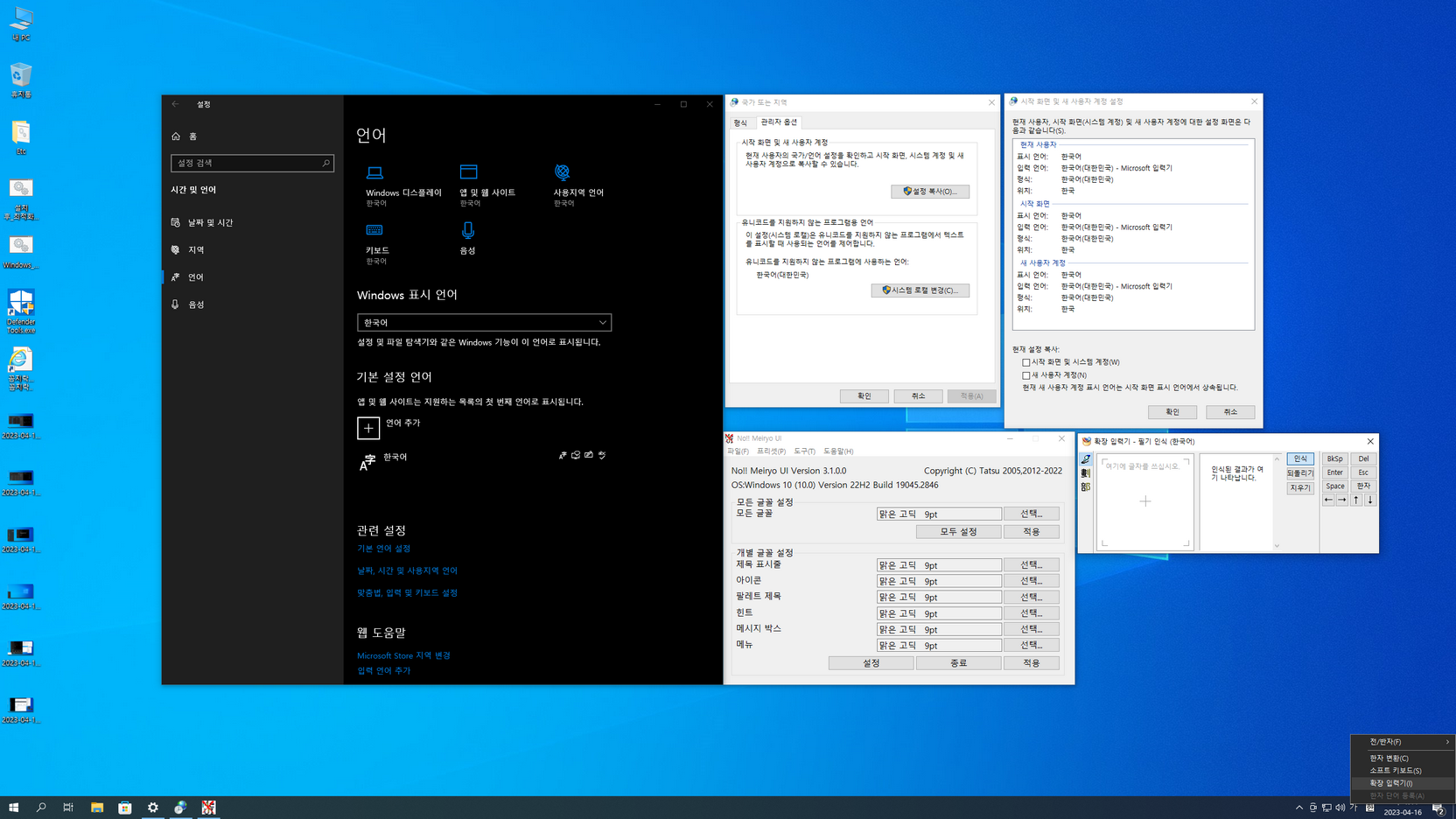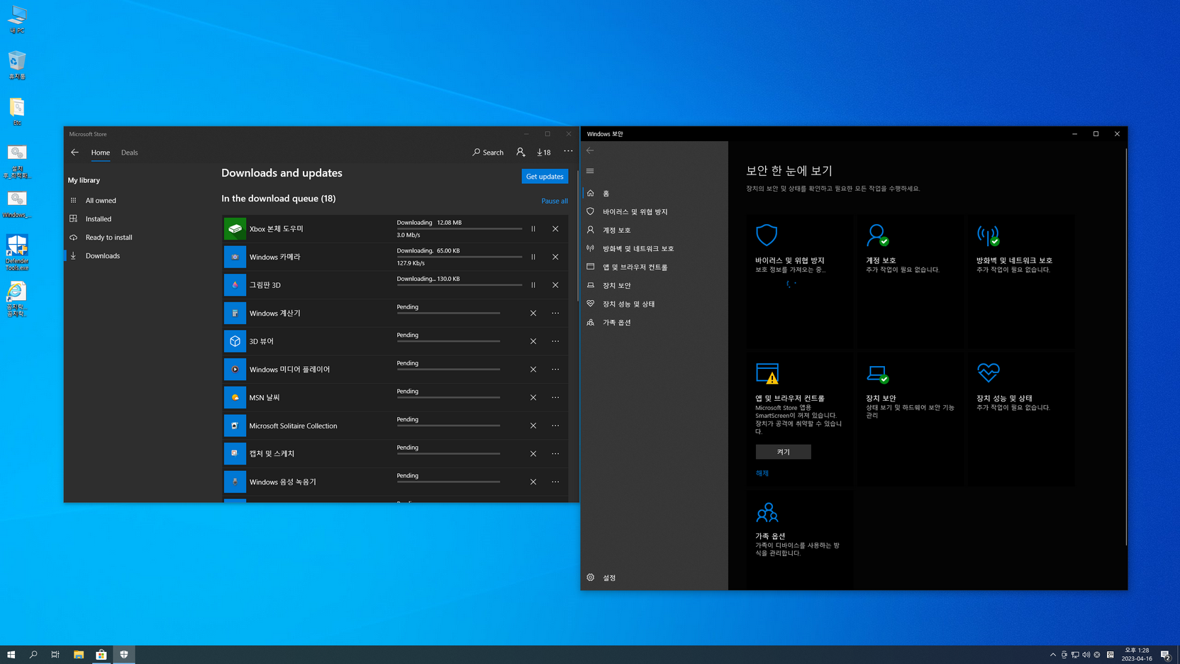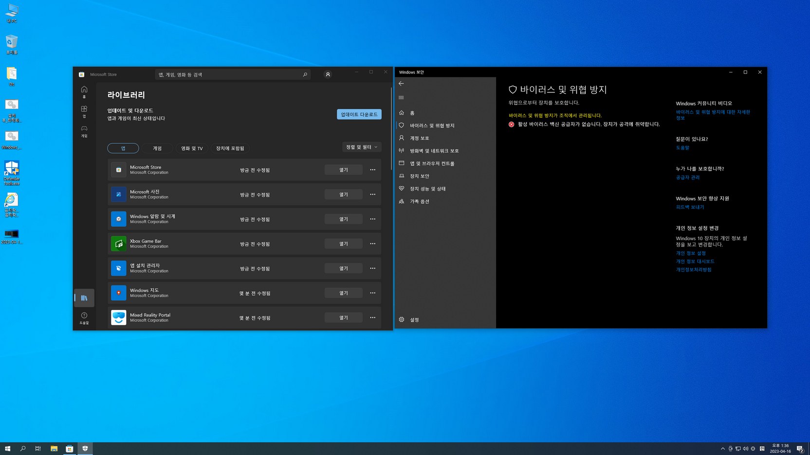 또 스토어 및 UWP 앱의 한국어 적용, 디펜더 활성화는 아래 캡처 이미지를 참고하여 진행....