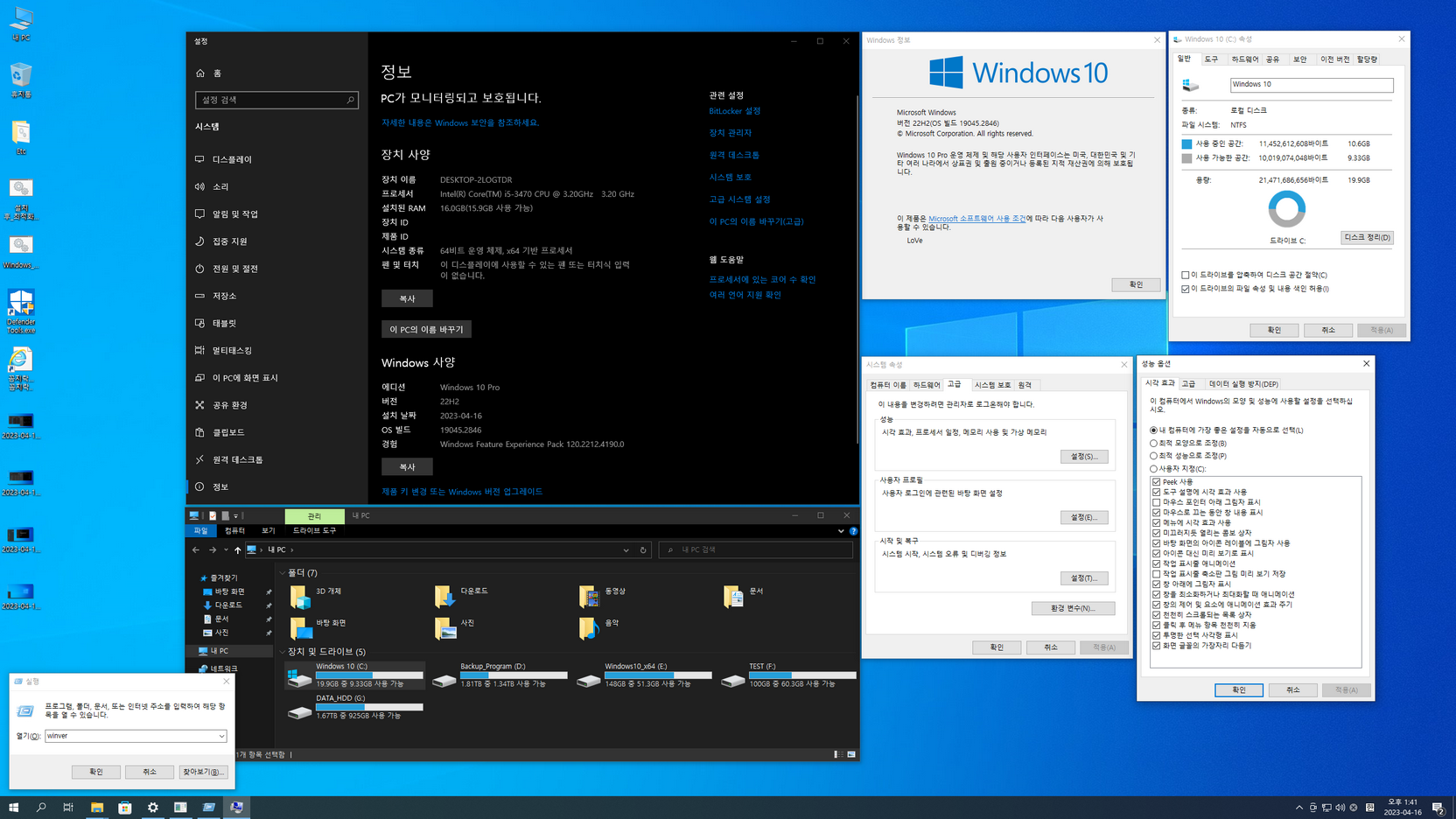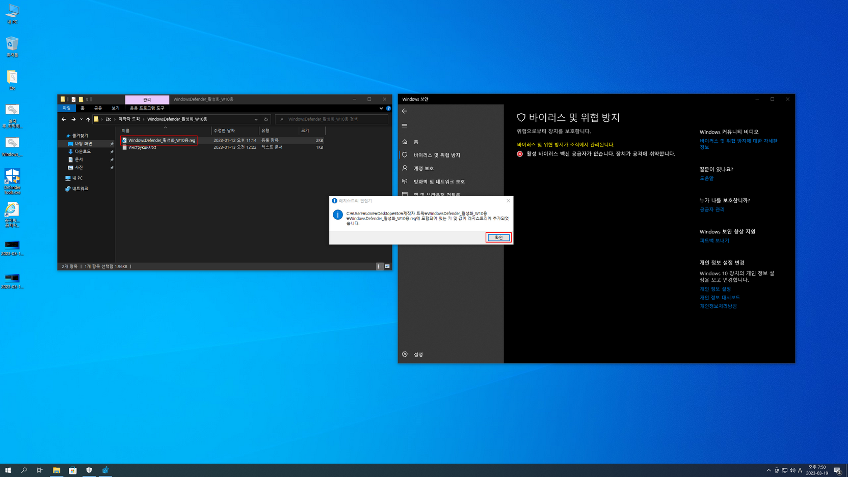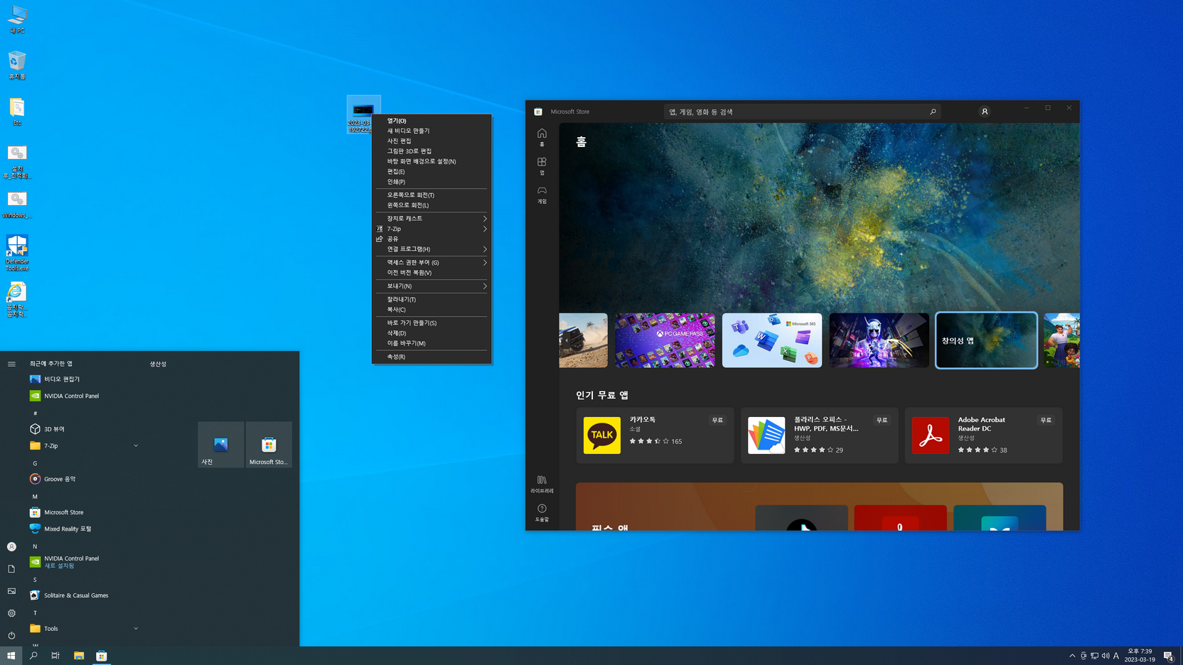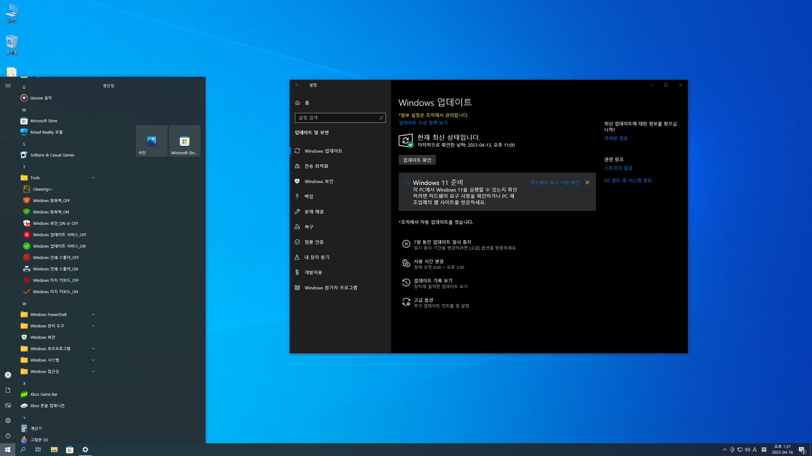 또 스토어 및 UWP 앱의 한국어 적용, 디펜더 활성화는 아래 캡처 이미지를 참고하여 진행....