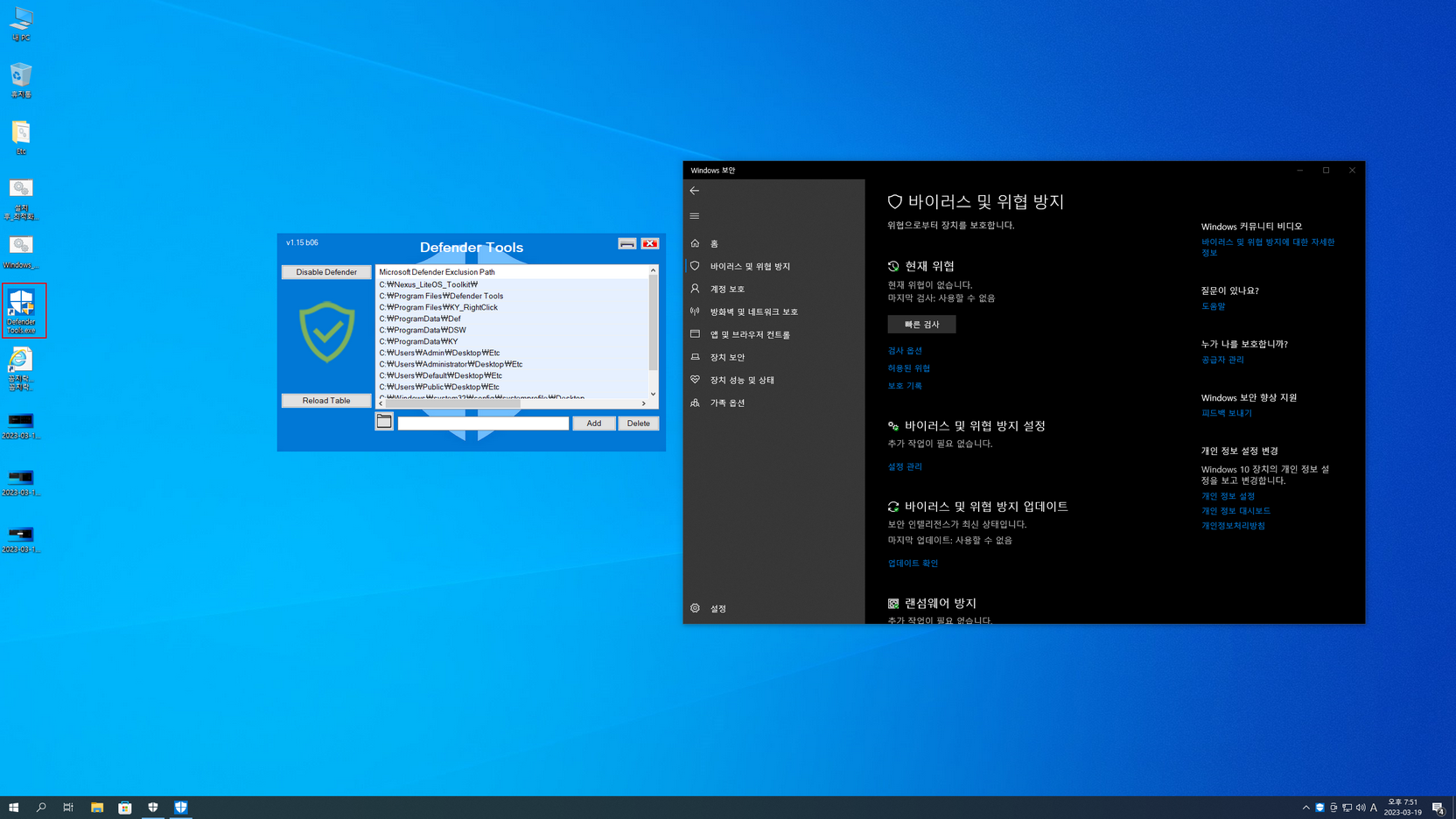 - 디펜더 비활성화(활성화는 아래 캡처 이미지 참고)