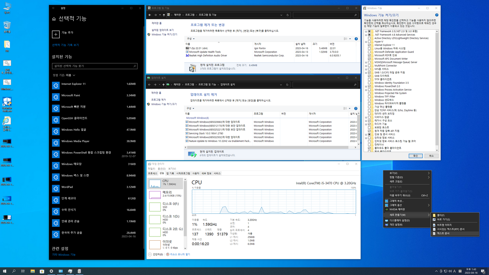 - 닷넷 3.5 / SMB1.0 / 레거시 구성 요소 기능 활성화