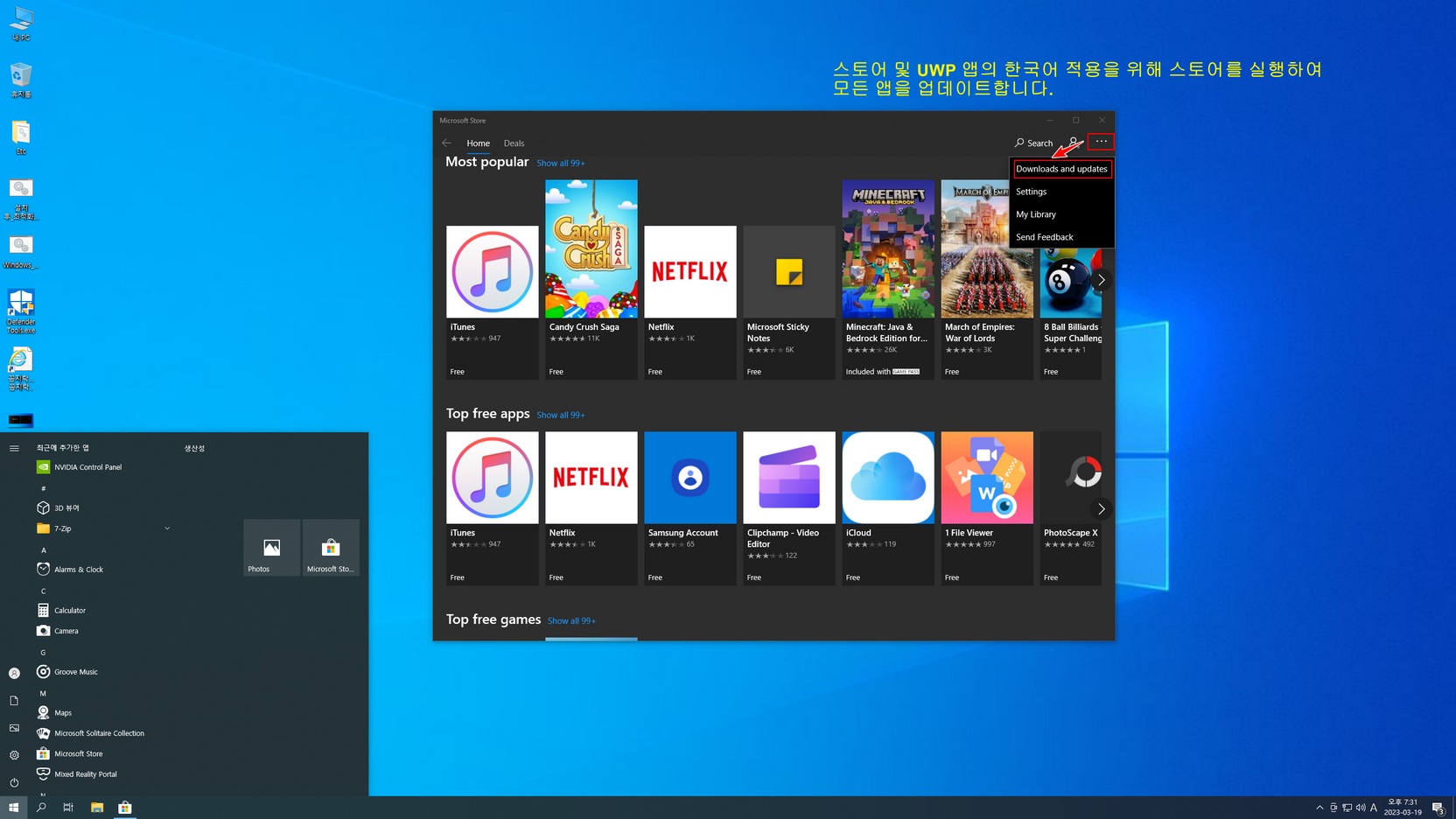스토어 및 UWP 앱 한국어 적용