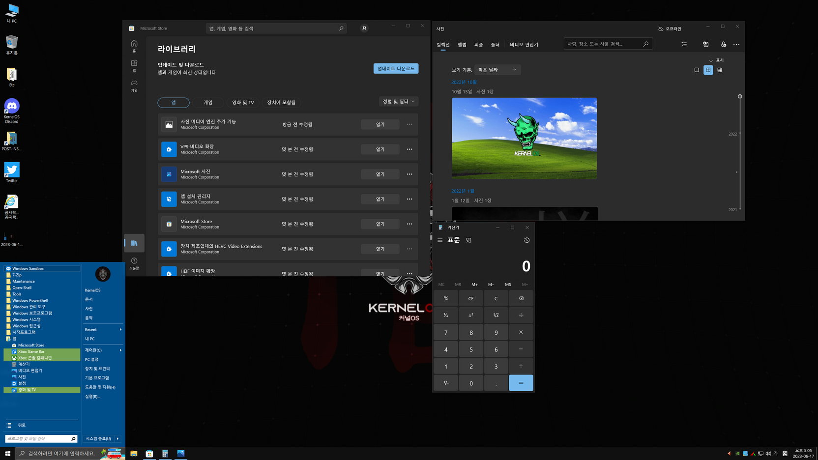 - 사진 / 계산기 앱 삭제(앱을 추가할 수 없는 윈도우)
