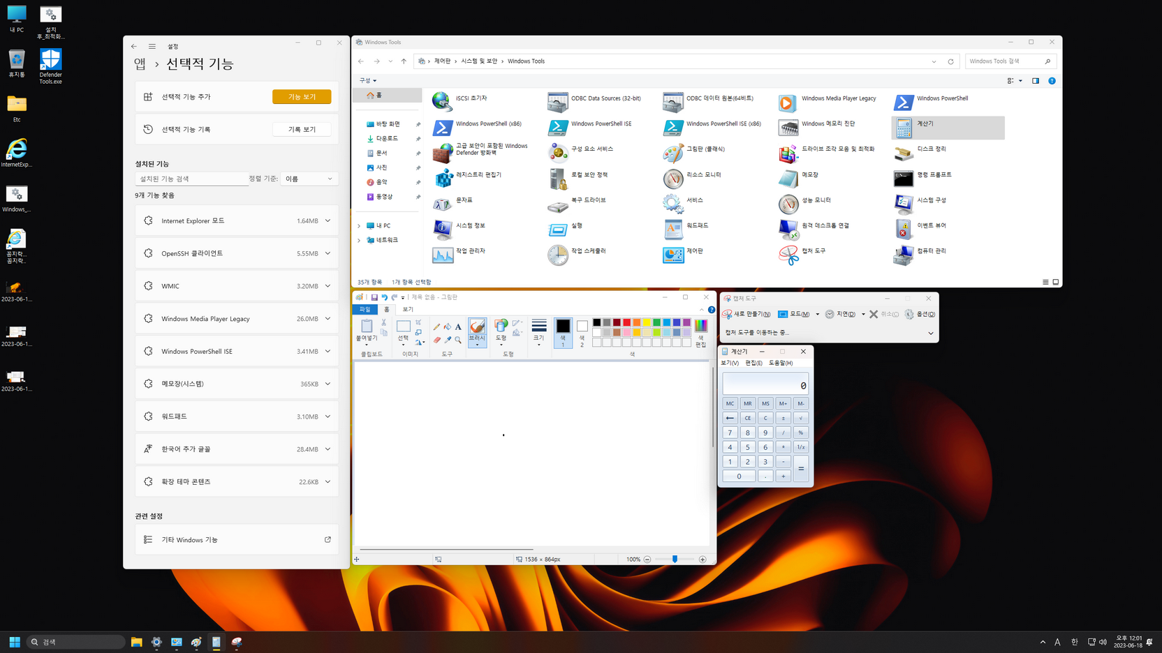 - 클래식 그림판 / 메모장 / 계산기 추가