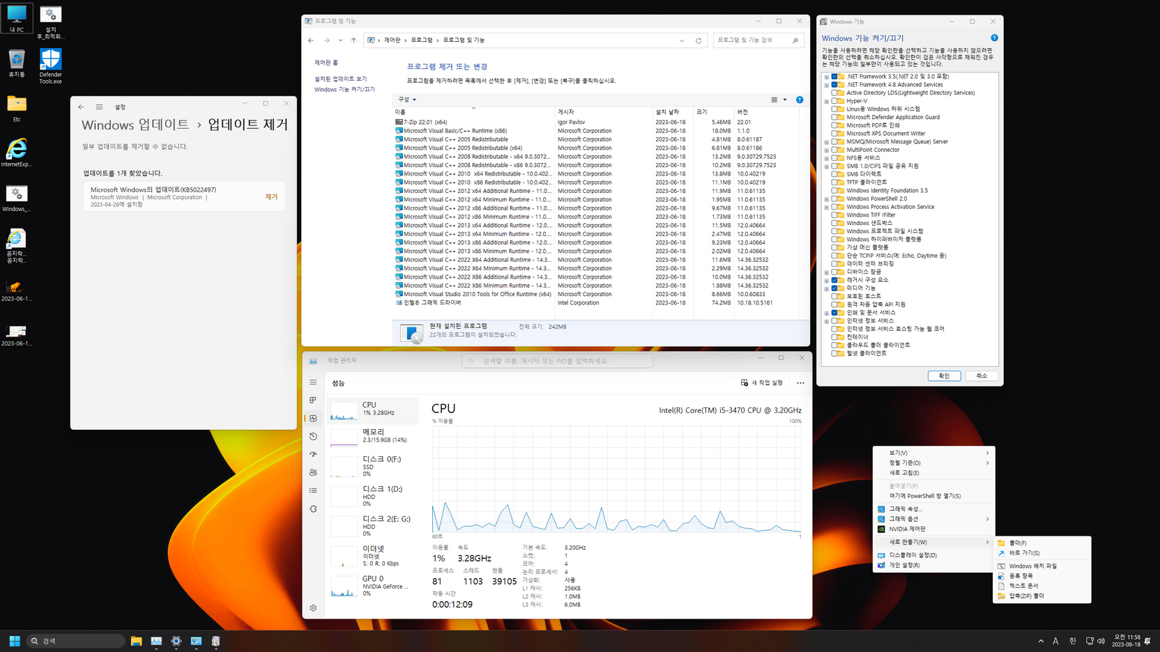 바탕화면 Etc 폴더에 제작자 클래식 우클릭에 대한 자료 추가- 닷넷 3.5 / SMB1.0 / 레거시 구성 요소 기능 활성화