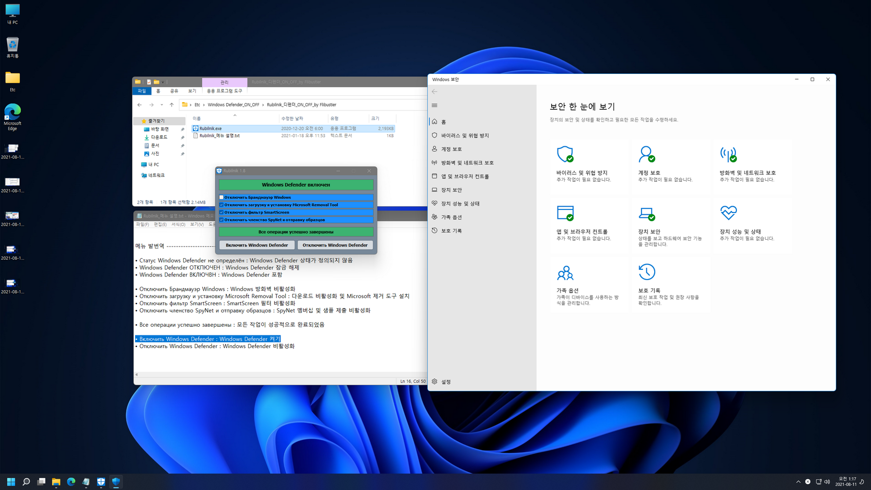 - 바탕화면 Etc 폴더에 디펜더관련 활성화 자료 추가