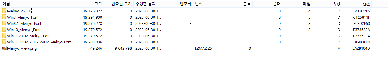 각각의 윈도우마다 Meiryo 폰트 버전이 달라 윈도우별도 정리했습니다. Meiryo 폰트를 추가하면 Meiryo UI가 같이 설치됩니다.
