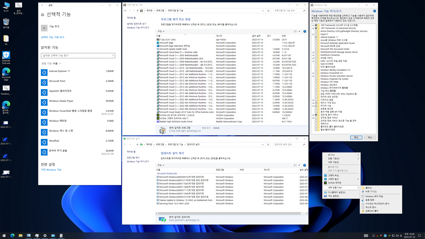 바탕화면 Etc 폴더에 제작자 클래식 우클릭에 대한 자료 추가- 닷넷 3.5 / SMB1.0 / 레거시 구성 요소 기능 활성화