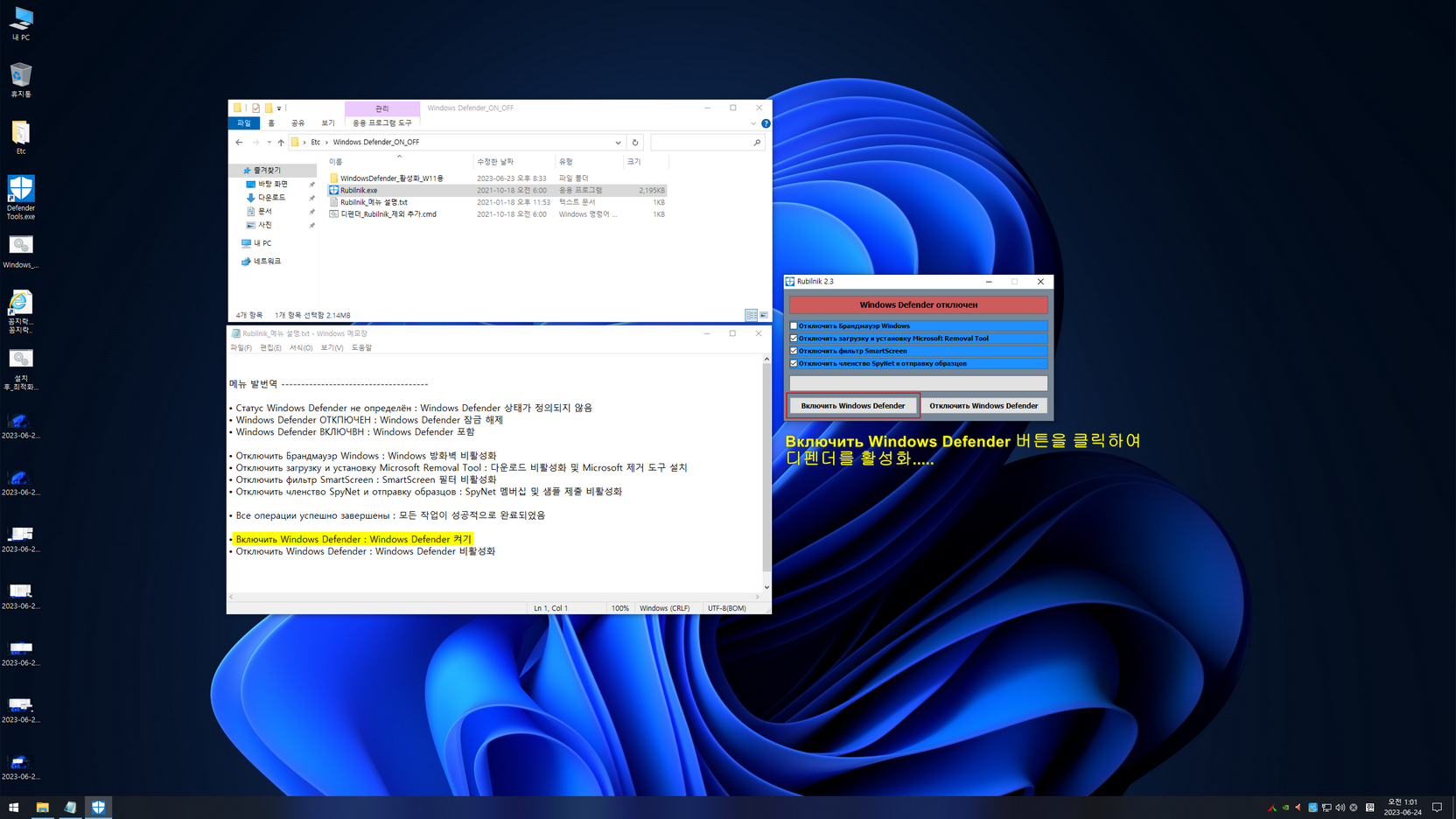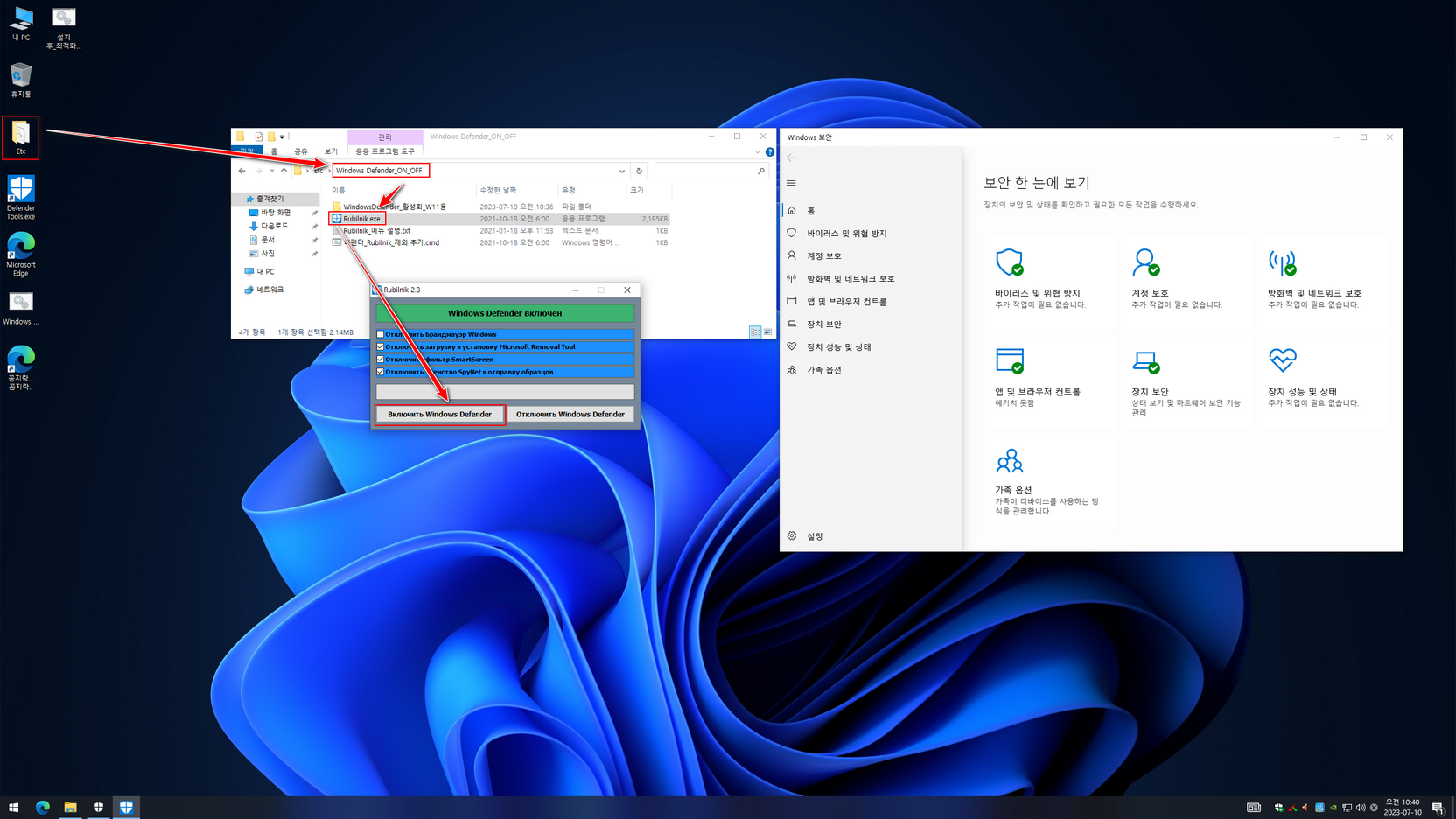 - 바탕화면 Etc 폴더에 디펜더관련 활성화 자료 추가