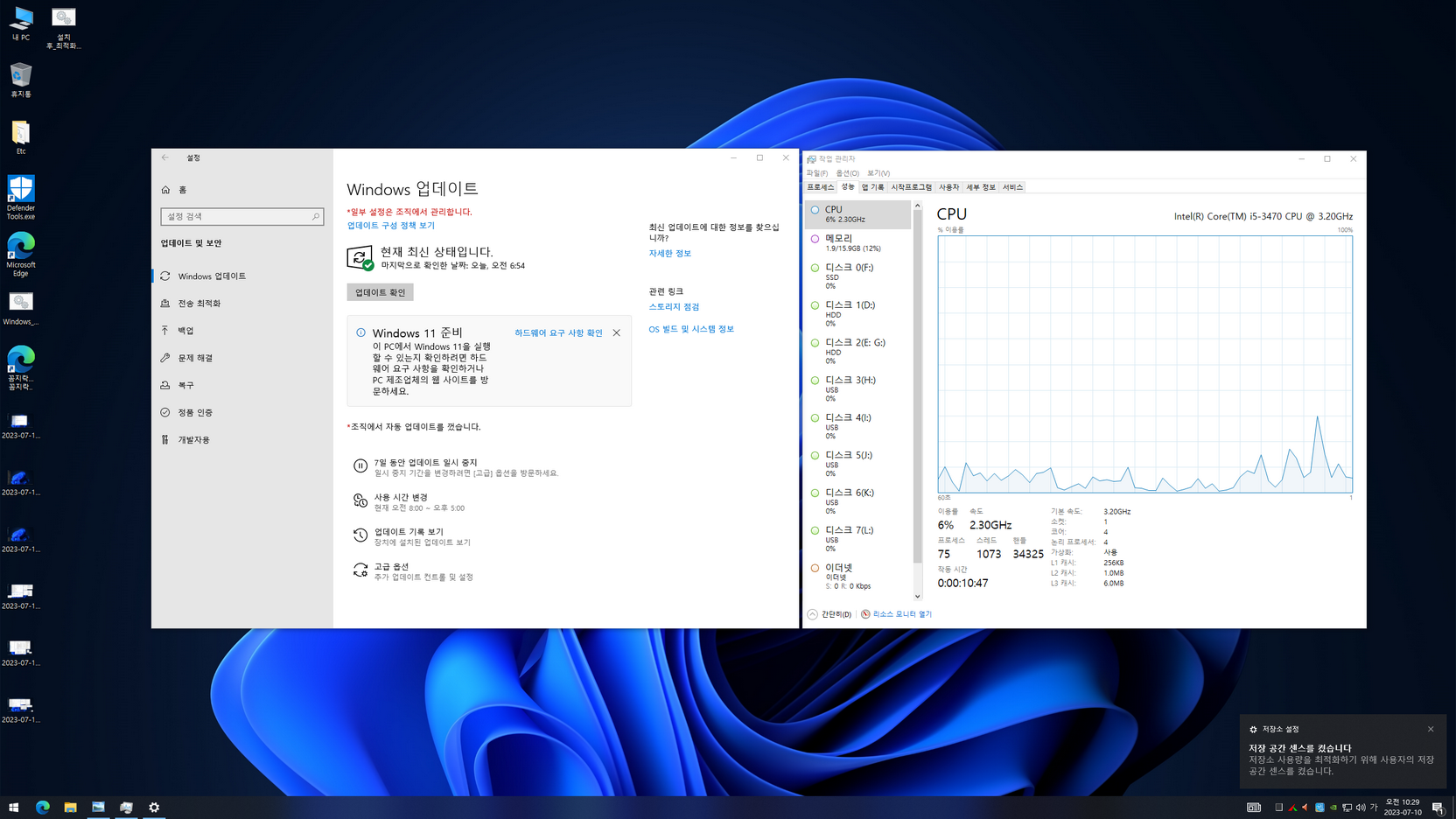 - 예약된 저장소 7GB 비활성화