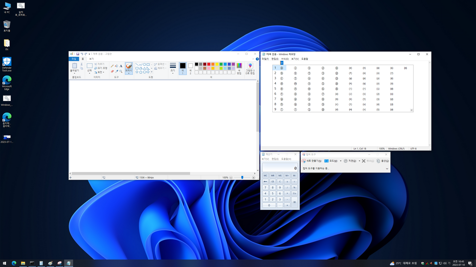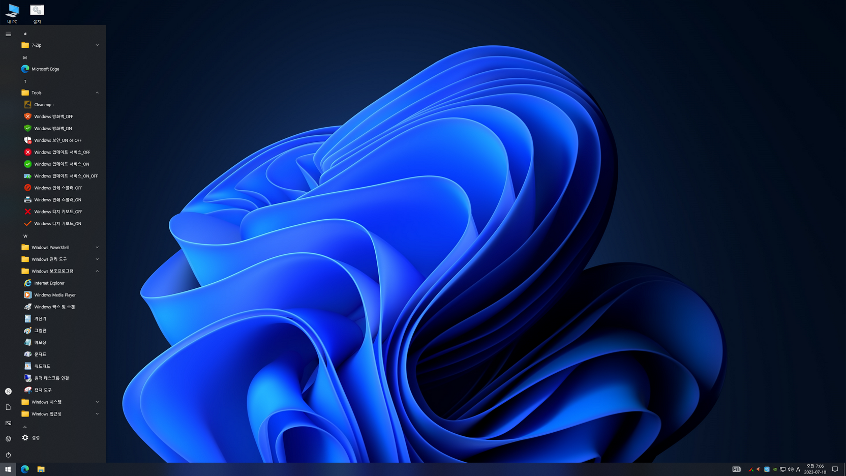 - 클래식 그림판 / 메모장 / 계산기 / 캡처 도구 추가