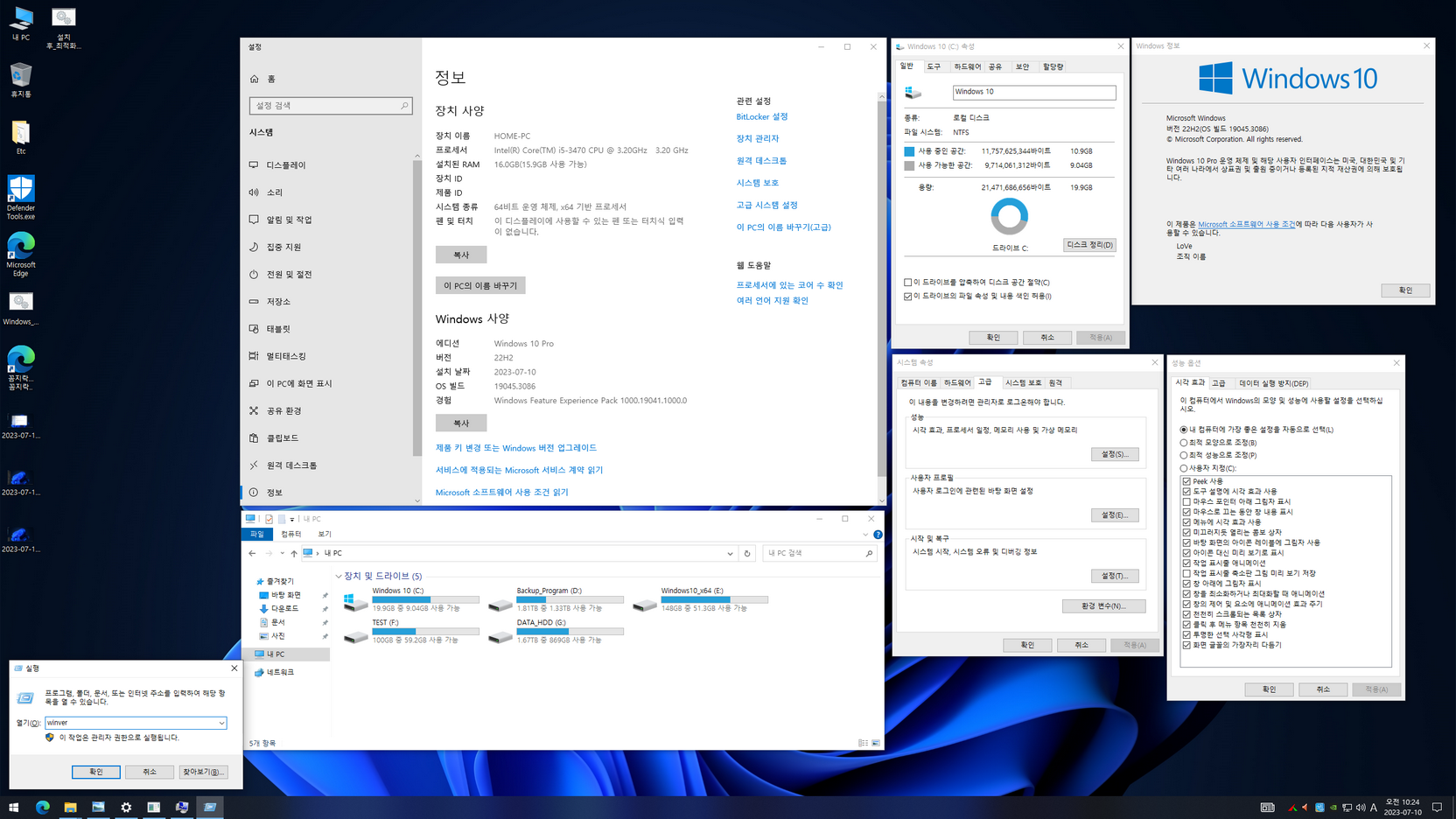 Flibustier님 트윅 제작 툴을 bulygin-dima님이 개선한 Windows 11 버전과 LTSC 버전에 이어 Windows 10 Pro 22H2 버전도 지역화했습니다. Windows 10 버전은 Winx 메뉴와 디스크 청소 툴이 보강된 버전입니다.