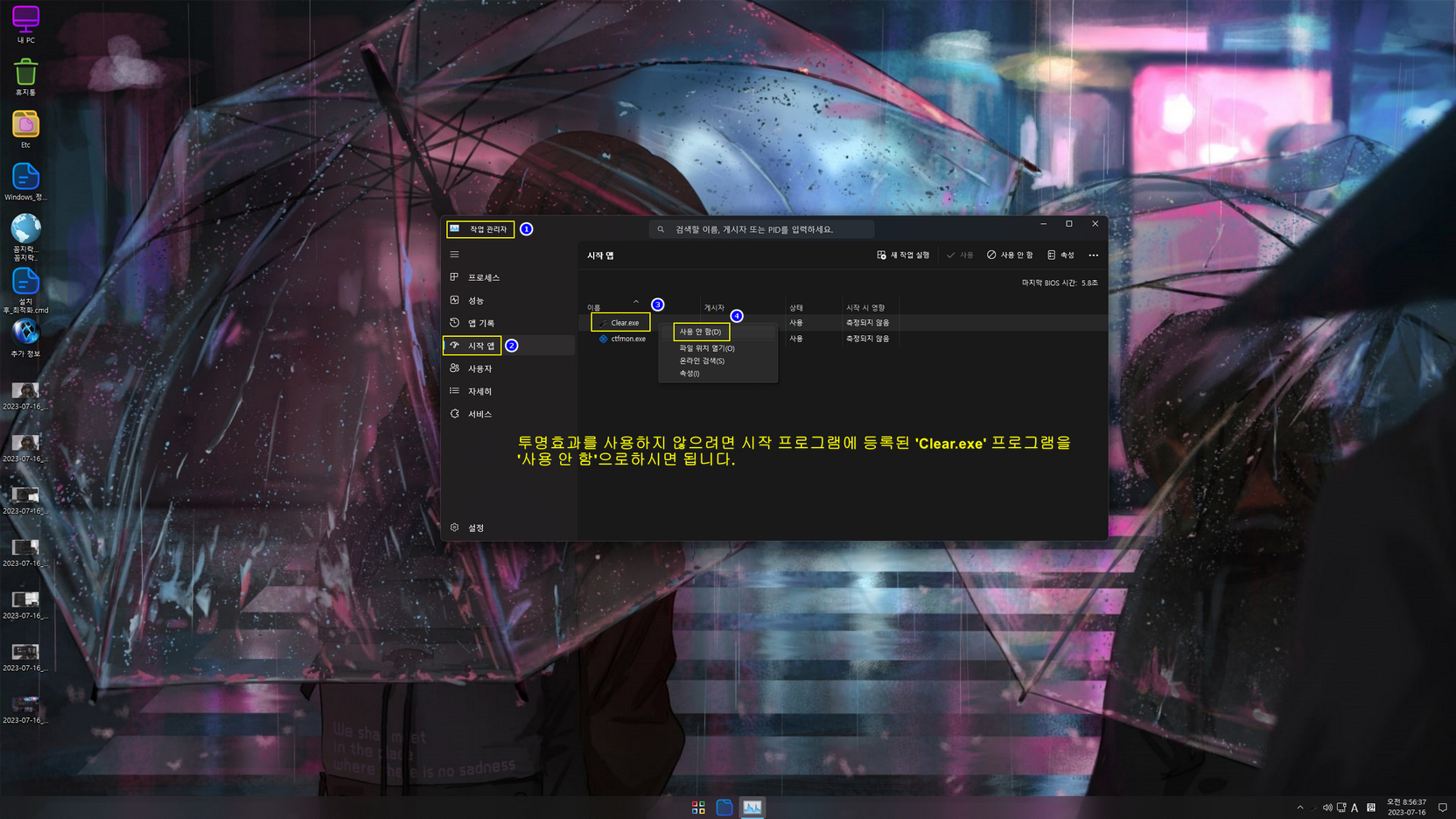 투명효과 삭제 방법