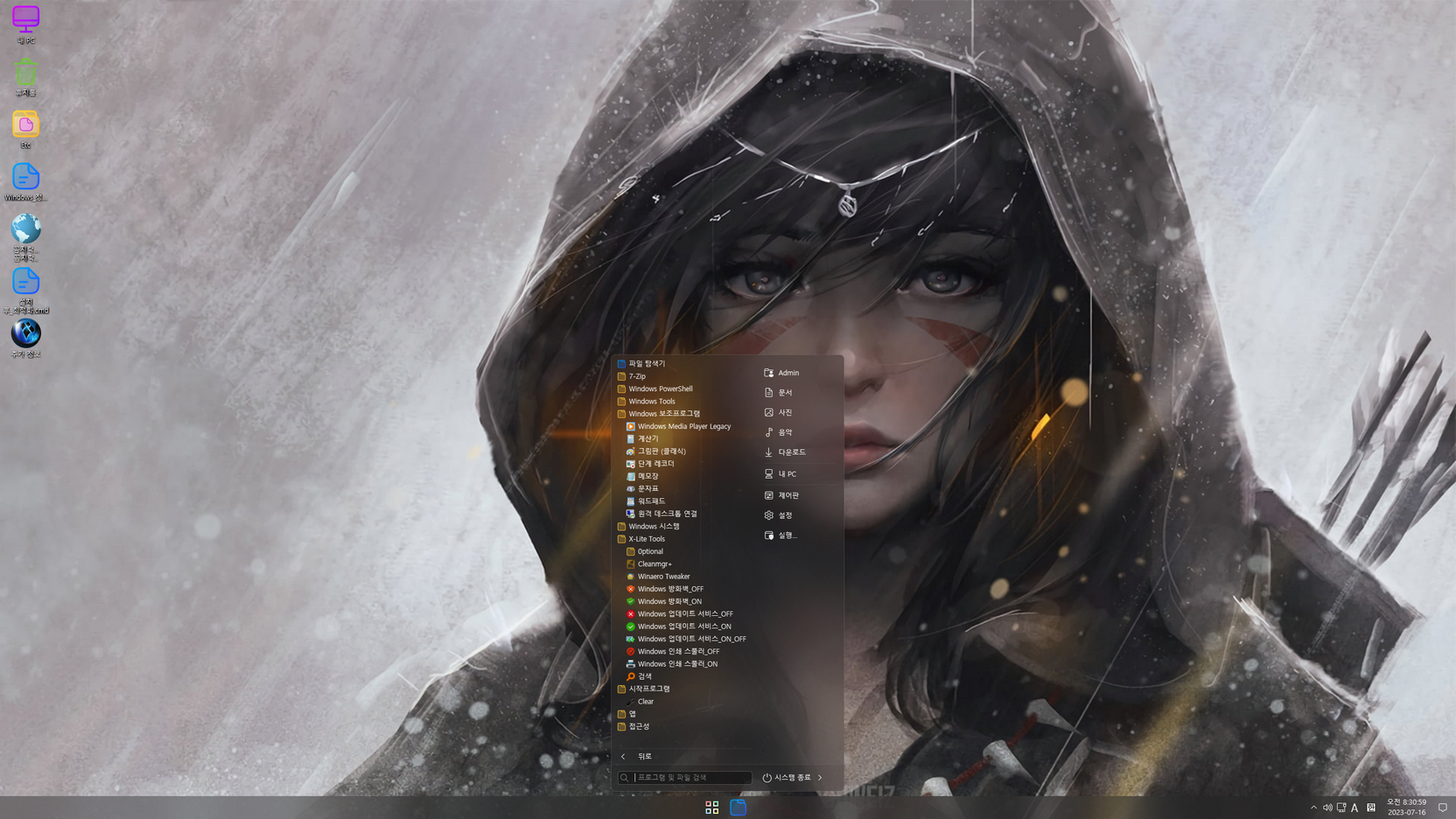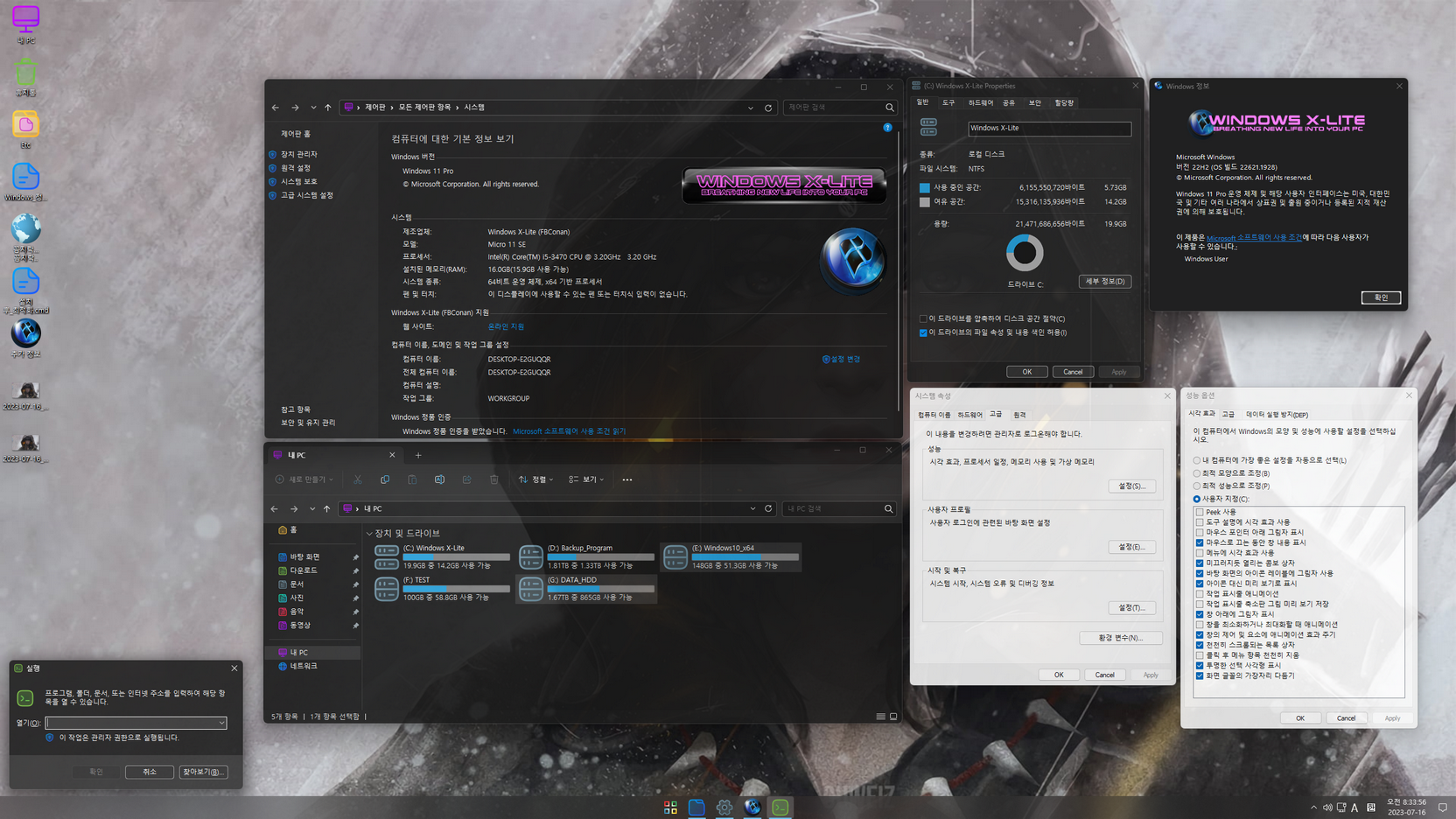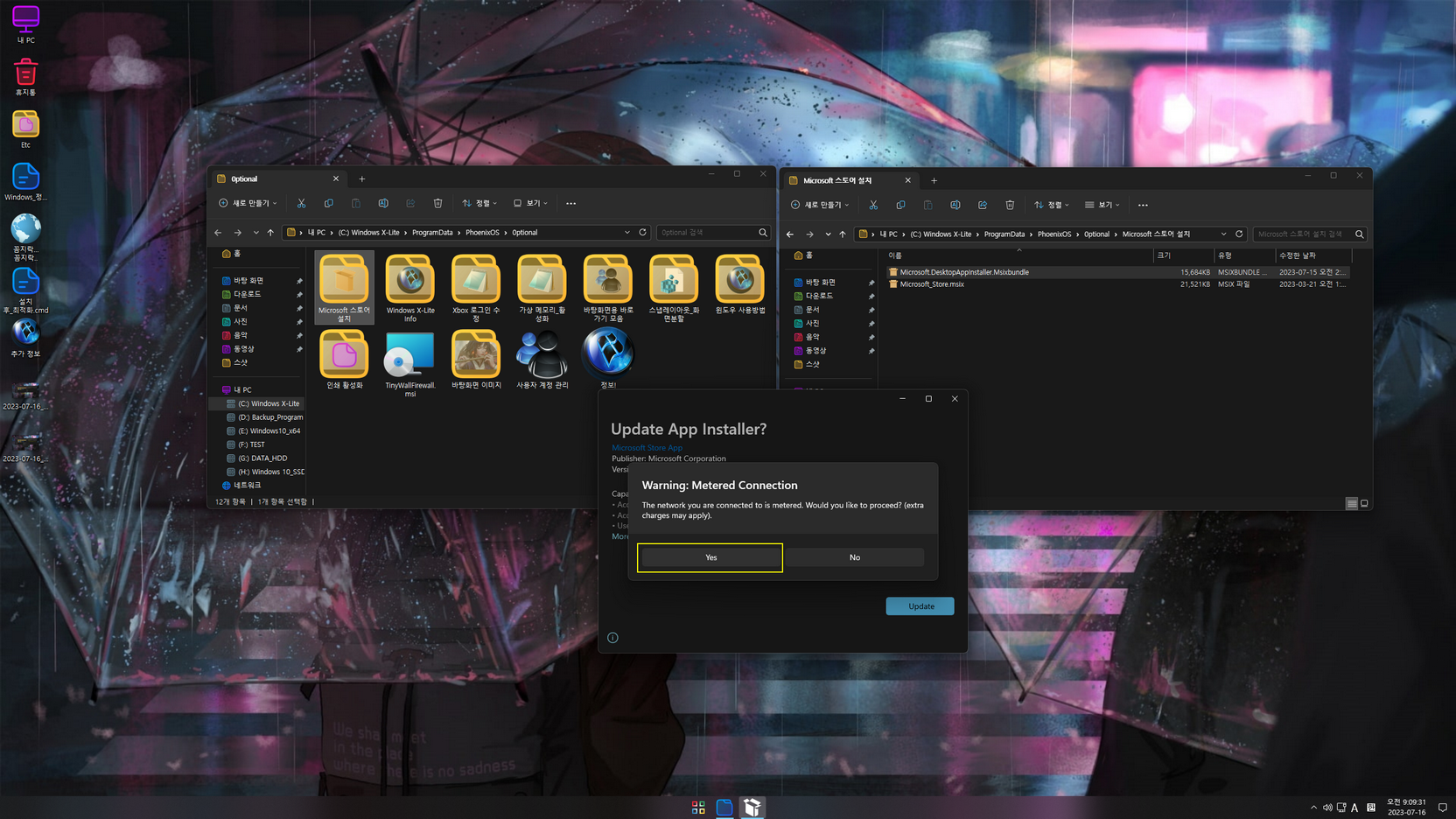 Windows 11 X-Lite (22H2_22621.1928) 'Micro 11' 버전에 테마팩이 적용된 윈도우이고, 누적 업데이트 및 디펜더는 사용할 수 없으며 많은 기능들이 삭제된 윈도우입니다. 맛보기용 정도로 사용을.....