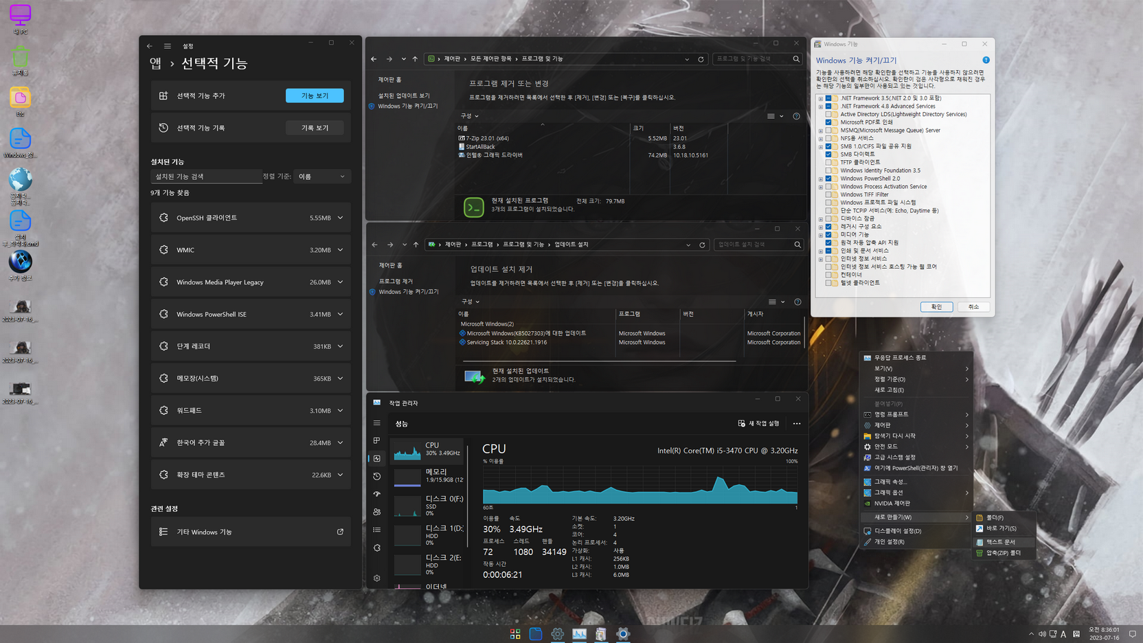 - 닷넷 3.5 / SMB1.0 / 레거시 구성 요소 기능 활성화
