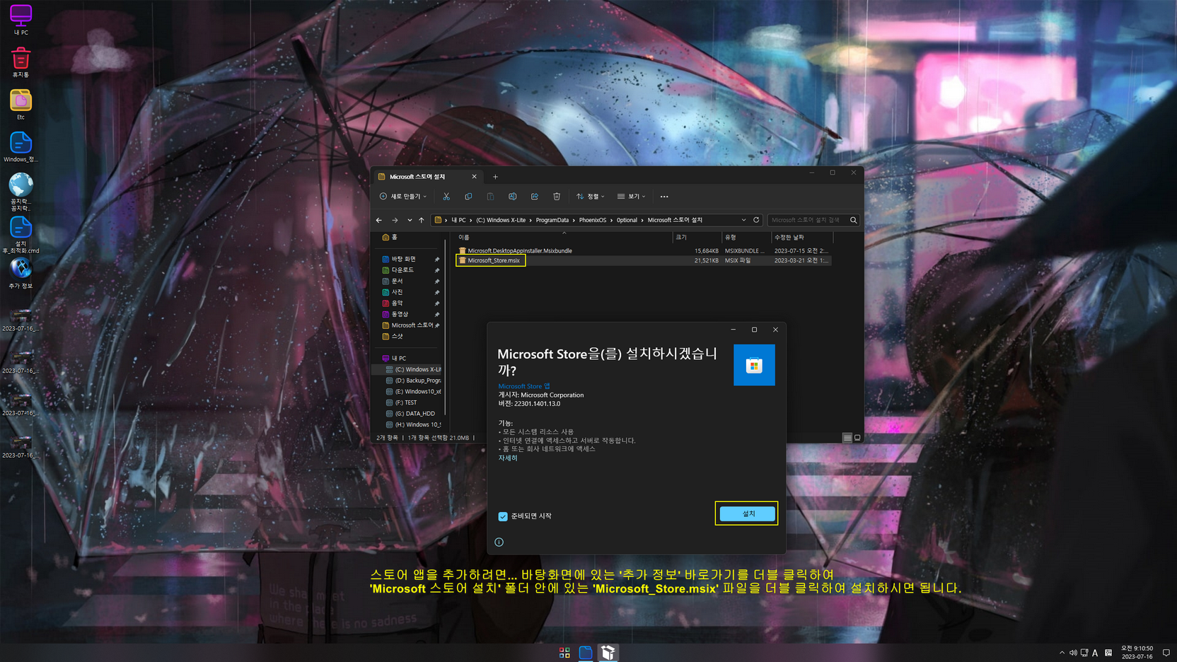 - 스토어 앱 추가 : 바탕화면에 있는 '추가 정보 → Microsoft 스토어 설치' 폴더에 있는스토어 앱 설치용 'Microsoft_Store.msix'를 사용하여 스토어 앱을 추가