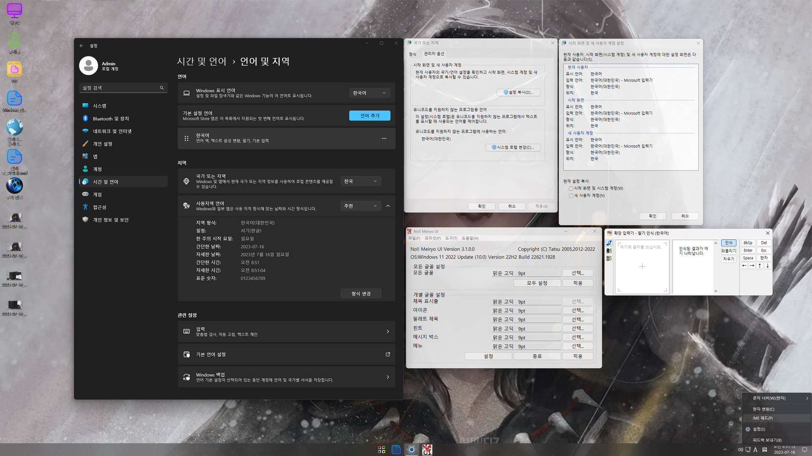 오프라인 한글화 작업이고, 무봉인 윈도우라 한국어 설정을 일부 마무리할 수 없었습니다. 한국어 설정을 위해 첫 바탕화면 진입 후에 바로 배치파일이 실행되고, 10초 후 재부팅됩니다. 재부팅 후에는 '앱 설치 관리자(DesktopAppInstaller)'의 한국어 추가 작업을 하셔야 합니다. 앱 설치 관리자 한국어 추가 방법은 아래 갭처 이미지를 참고....