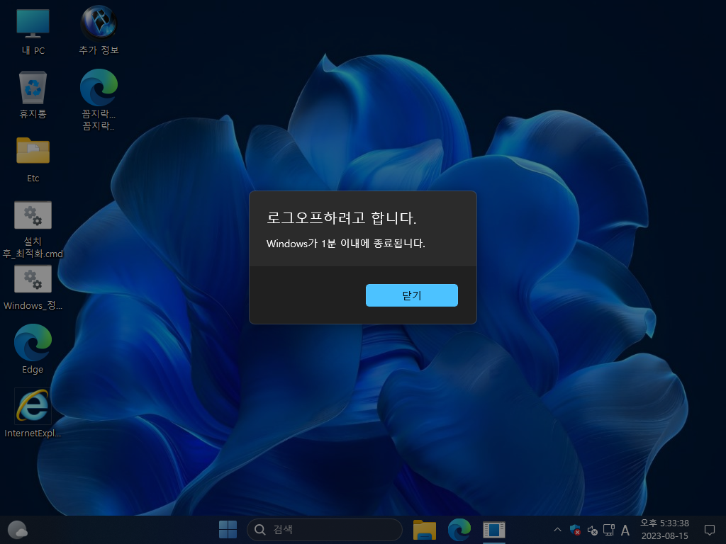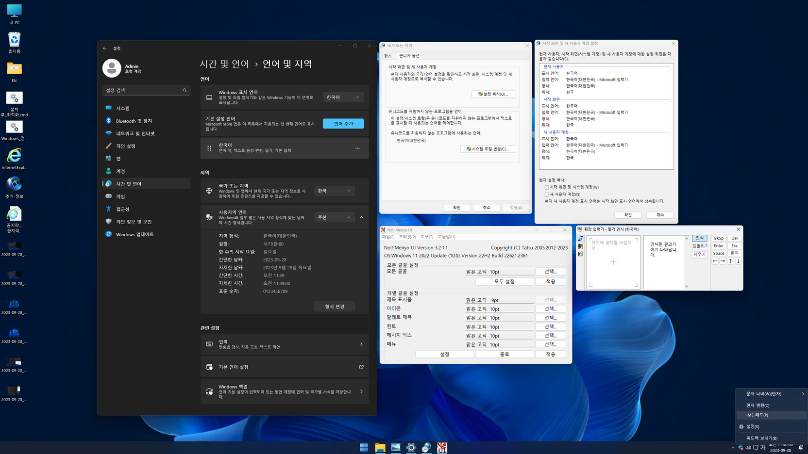 오프라인 한글화 작업이고, 무봉인 윈도우라 한국어 설정을 일부 마무리할 수 없었습니다. 한국어 설정을 위해 첫 바탕화면 진입 후에는 바로 배치파일이 실행되고, 10초 후 재부팅됩니다. 이번 한글화 작업부터 디펜더 관리 프로그램은 제외합니다.