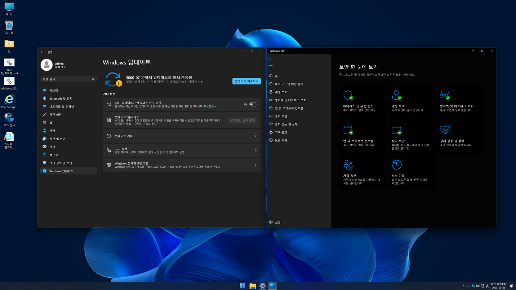 - 자동 업데이트 비활성화(3000년까지 업데이트 일시 중지)
