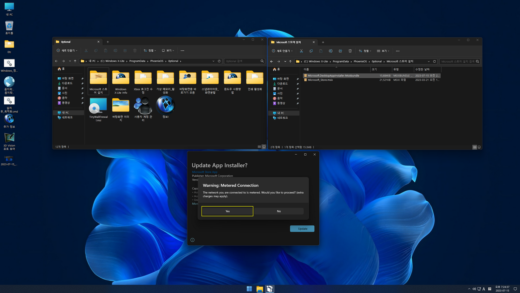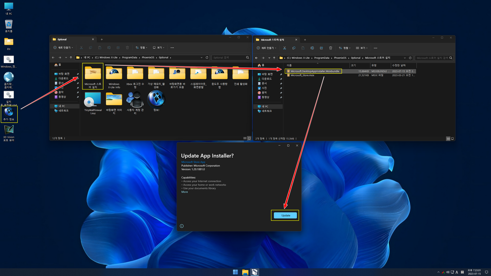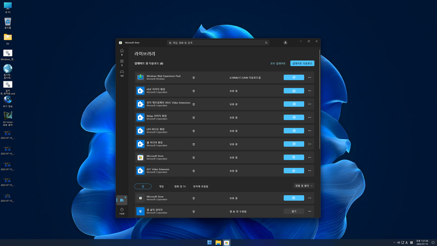 ▶ 방법 2. 바탕화면 'Etc' 폴더에 있는 'Misrosoft_Store_설치와 삭제_11용.7z' 압축 파일을 해제하여 스토어 앱을 추가