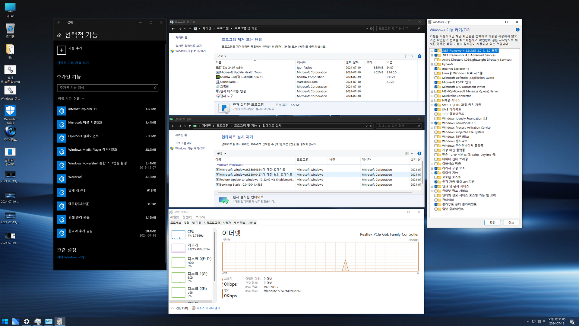 - 닷넷 3.5 / SMB1.0 / 레거시 구성 요소 기능 활성화