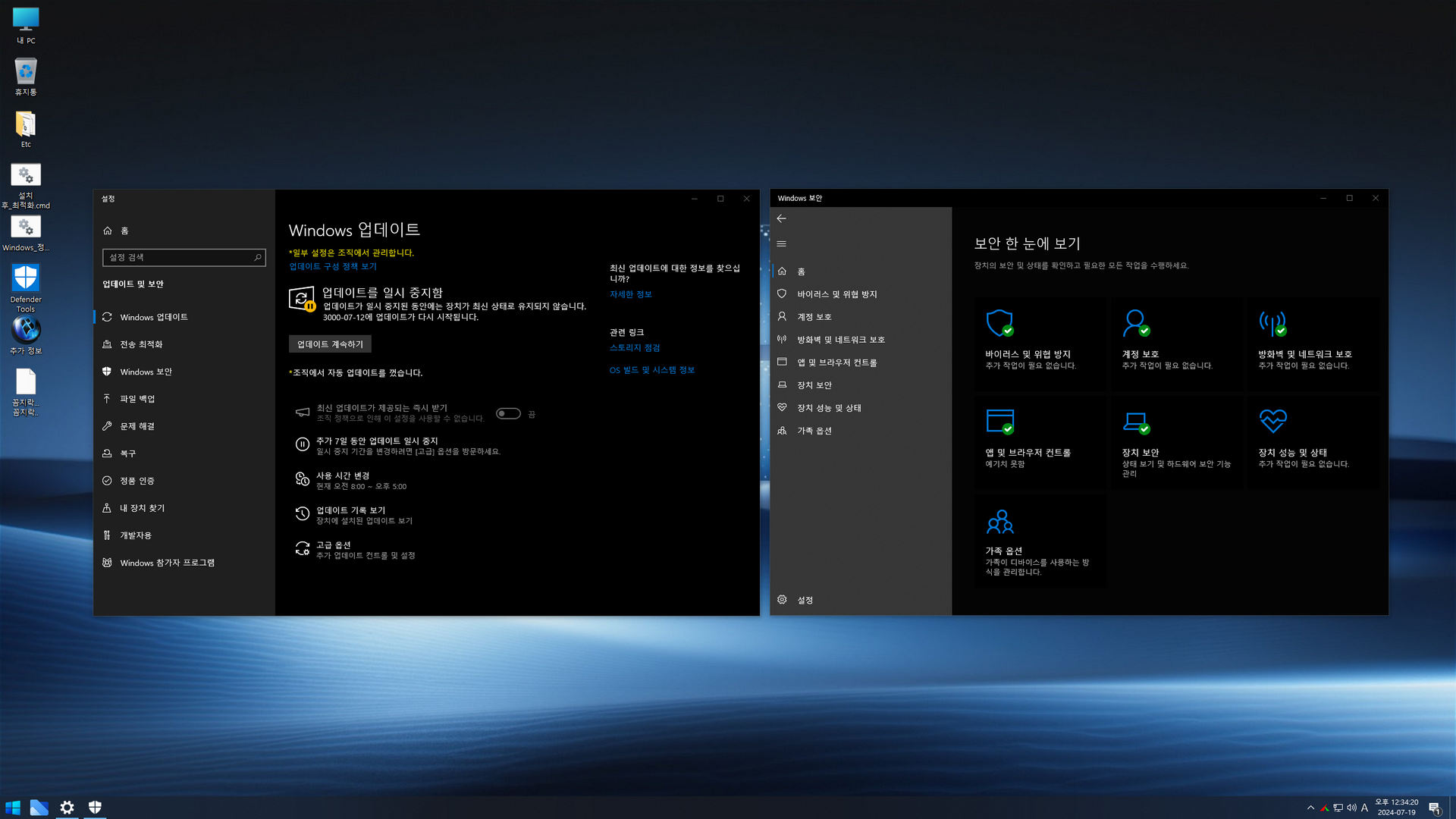 - 자동 업데이트 비활성화(3000년까지 업데이트 일시 중지)