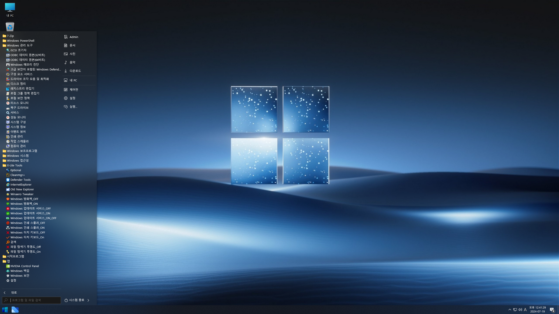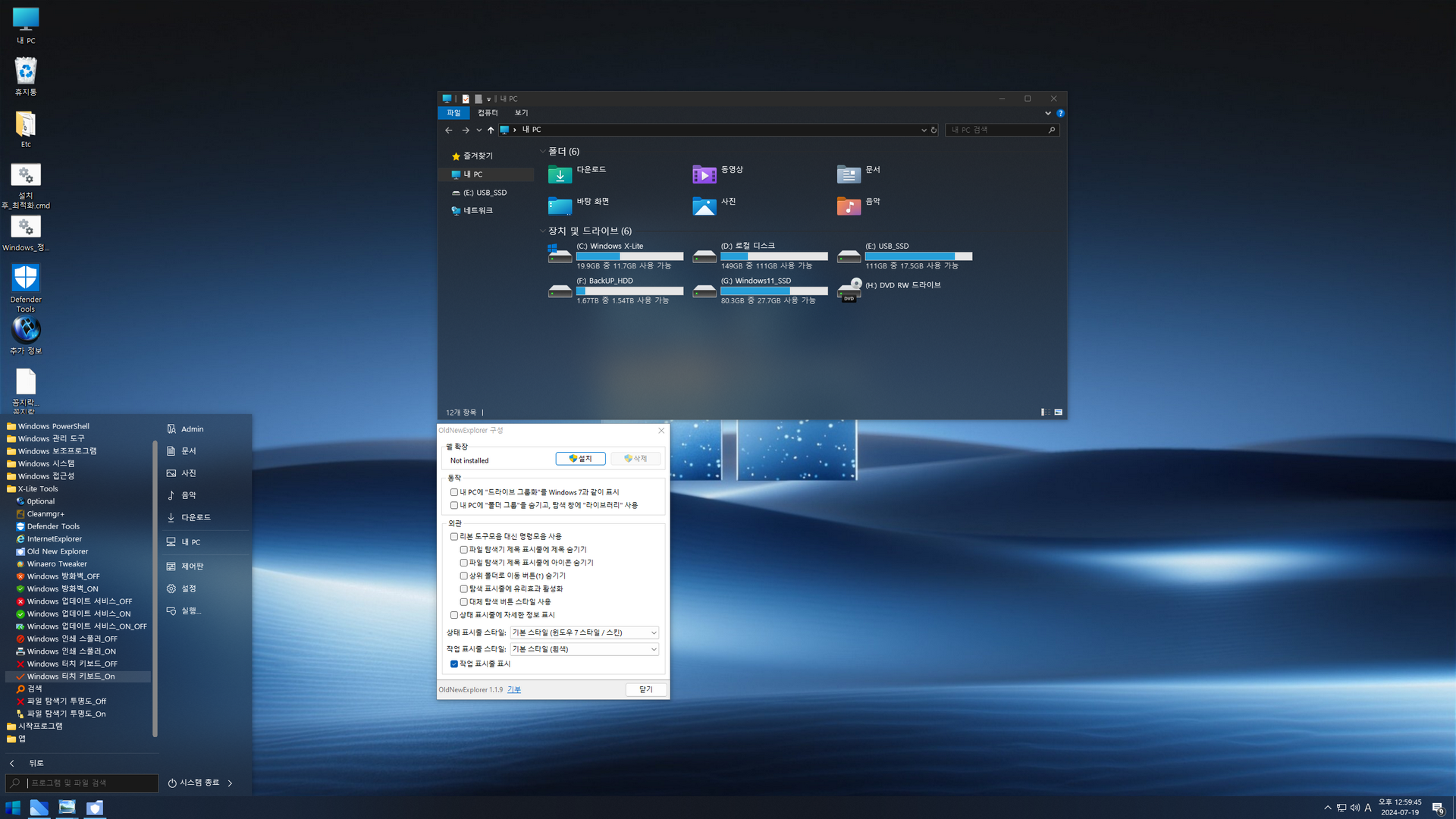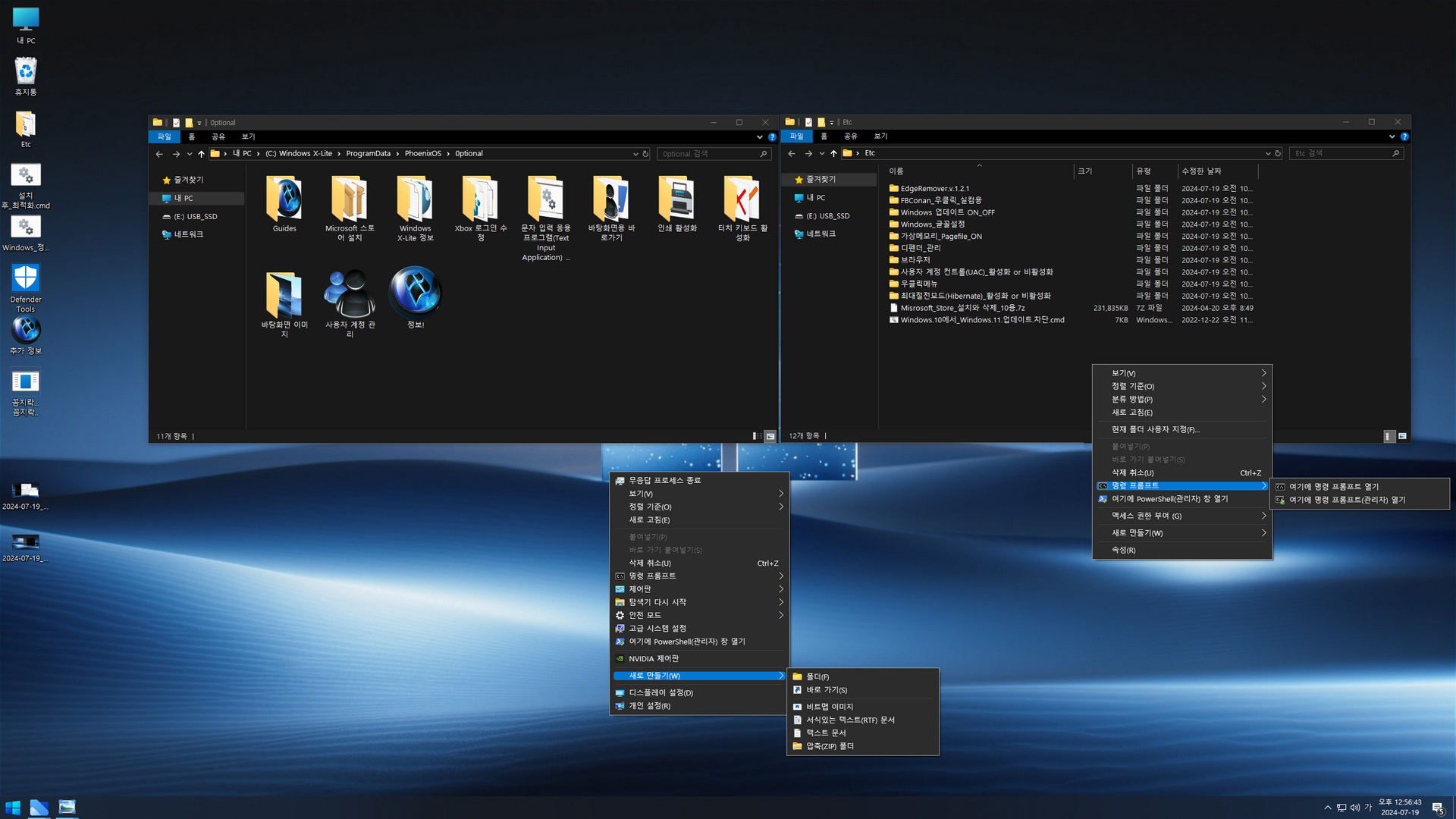 우클릭 메뉴 '새로 만들기 → 텍스트 문서' 추가우클릭 메뉴 '미리보기' 추가작업표시줄 정리WinSXS 폴더 정리제작자 일부 추가 프로그램 정리