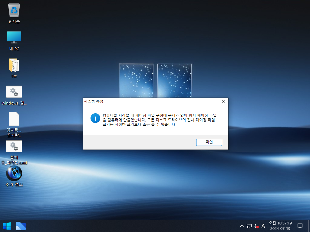 - 가상 메모리(PageFile.sys) 활성화