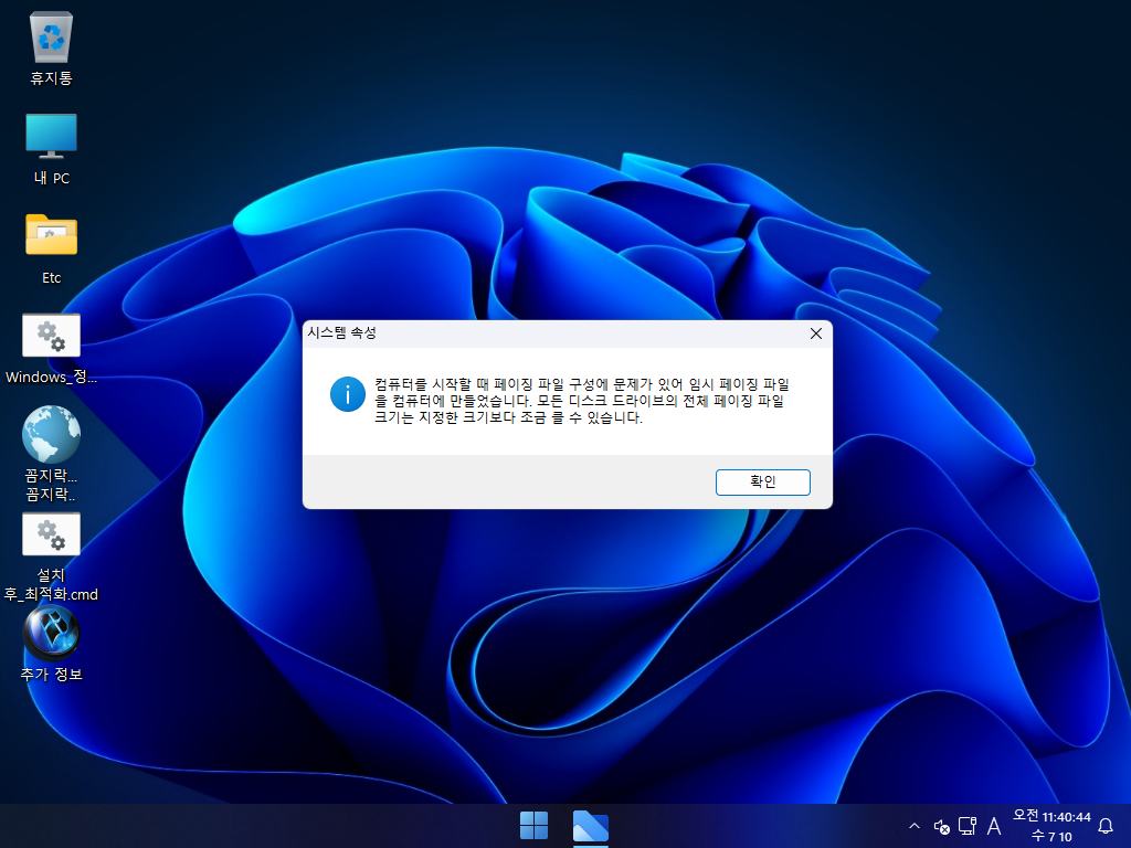 - 가상 메모리(PageFile.sys) 활성화