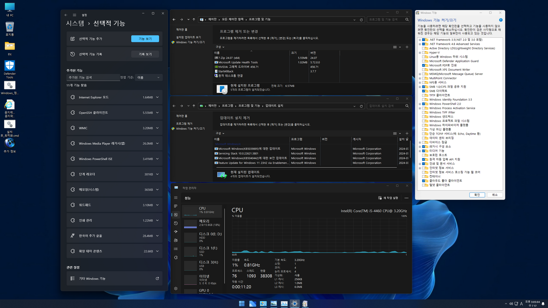 그림판 / 메모장 설치 앱 추가(바탕화면 'UWP Apps' 폴더에)- 닷넷 3.5 / SMB1.0 / 레거시 구성 요소 기능 활성화