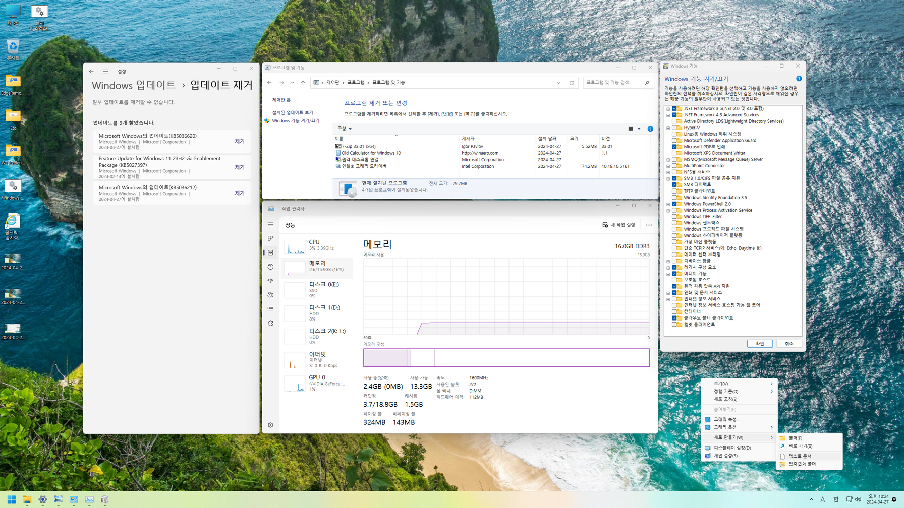 - 업데이트 통합(SSU-22621.3447 / KB5036893 / KB5027397 / KB5036620)