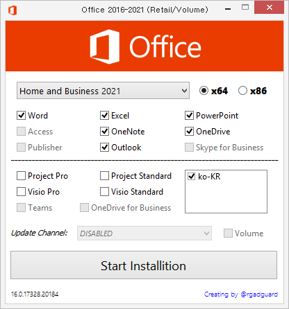 러시아에서 활동하시는 @rgadguard님의 Microsoft Office 2016-2021 Retail Channel(버전 2108) 2024년 3월 12일용 64비트 / 32비트 모음입니다.