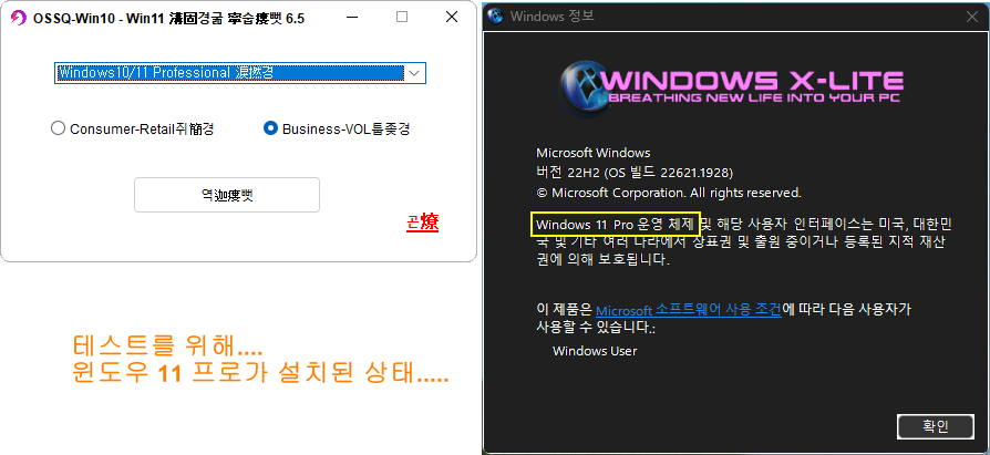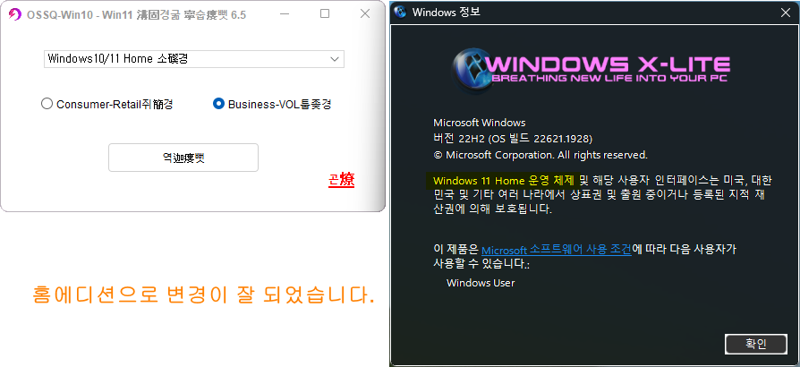 중국의 OSSQ에서 만든 프로그램입니다. 'Switching_6.5(OSSQ-Win10 - Win11 系统版本 一键转换 6.5.exe)' 유틸리티는 사용중인 Windows 10 및 Windows 11의 모든 에디션(버전)을 변경할 수 있는 자동 프로그램입니다. Professional Edition, Enterprise Edition, Home Edition, Education Edition, G Enterprise Edition 등을 지원하며, 원클릭 후 변경될때 까지 기다려서 재 부팅 또는 로그아웃하면 됩니다.