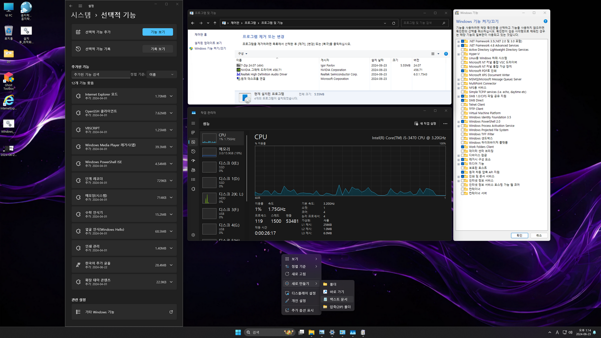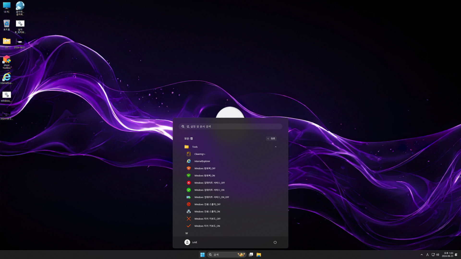 설치된 윈도우는 첫 바탕화면 진입 후, 제작자의 각종 트윅이 실행됩니다. 그래서 제작자 트윅이 마무리될 때까지 아무것도 만지지않을 것을 권합니다. 6번 에디션의 경우, 한글화 이후 시작 프로그램인 StartAllBack 프로그램이 제대로 설치가 안되어 재설치 하는 부분을 추가하여 마무리했습니다. 이 부분은 'hopefuls'님의 댓글에서 힌트를 얻었습니다. 이 자리를 빌어 감사 인사드립니다. 그리고 5번 에디션에서 'StartAllBack' 프로그램은 첫 실행 시 활성화하여만 사용이 가능합니다.