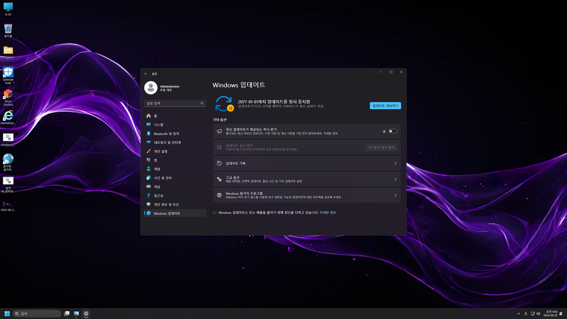 - 윈도우 업데이트 2077년까지 일지 중지
