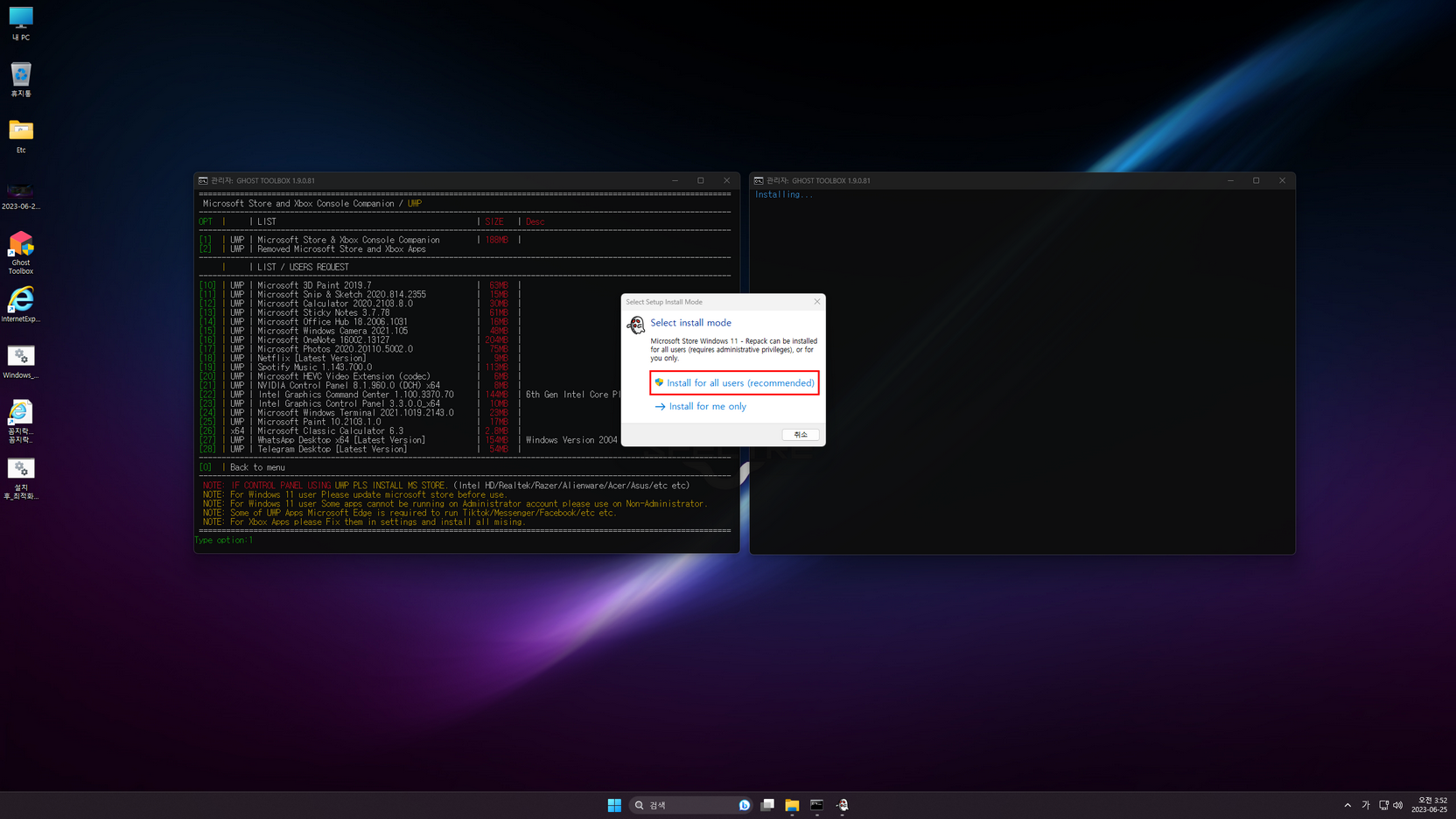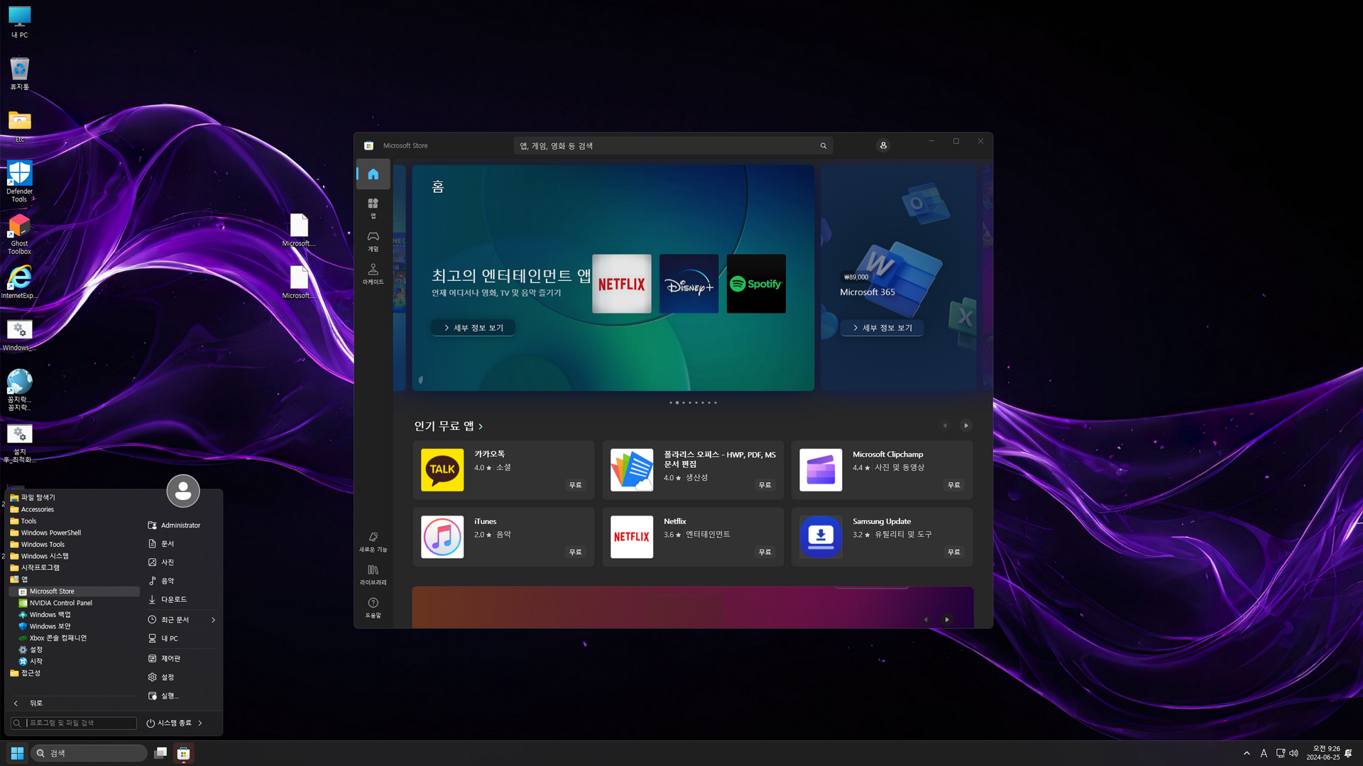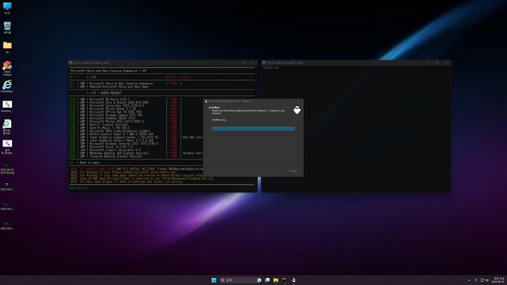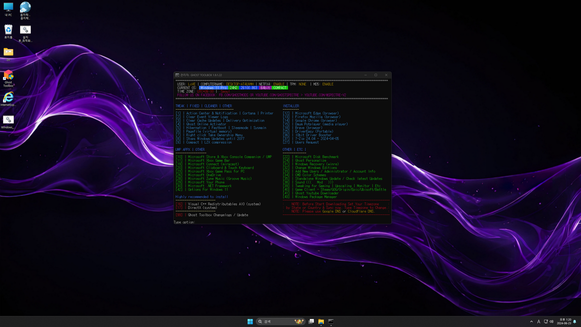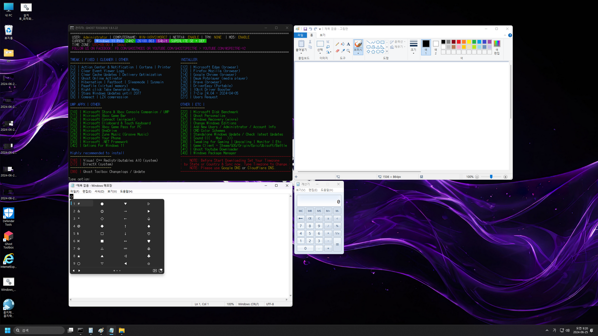 GHOST SPECTRE님 Windows 11 24H2 (26100.863) 프리뷰 버전의 지역화이며, 총 6 가지 에디션으로 구성된 윈도우입니다. 또 각각의 에디션은 디펜더 사용유무로 구분되며, 스토어 및 UWP 앱 추가는 바탕화면 'Ghost Toolbox'을 이용하여 설치(하단에 캡처 이미지 참고)하시면 됩니다.