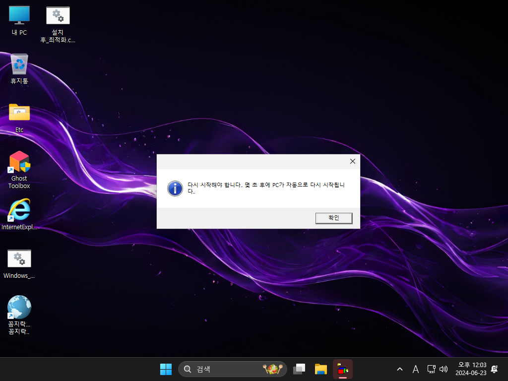 총 6 가지 에디션으로 *************.esd 이미지로 마무리합니다. 첫 바탕화면 진입 후에 제작자관련 각종 트윅작업이 이루어지고, 마무리가 되면 재부팅됩니다.
