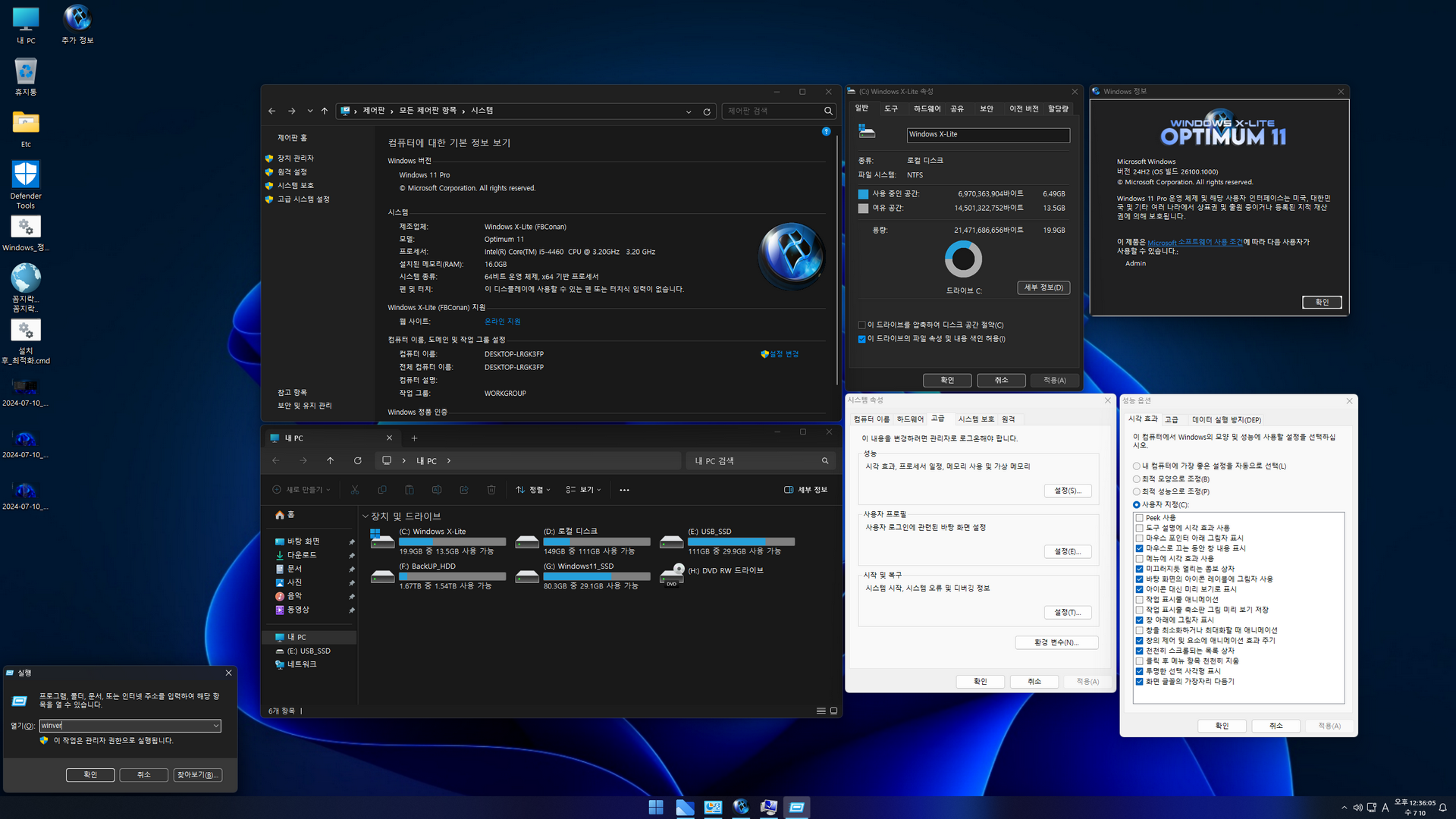 FBConan님 Windows 11 X-Lite (Windows 11 24H2_26100.1000) 버전의 지역화이며, 설치 시 컴팩트(Compact)압축 적용으로 설치 시간이 조금 걸립니다. Admin(사용자 계정, 관리자 권한)으로 무봉인된 윈도우이고, 누적 업데이트가 가능합니다.