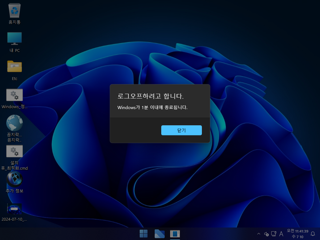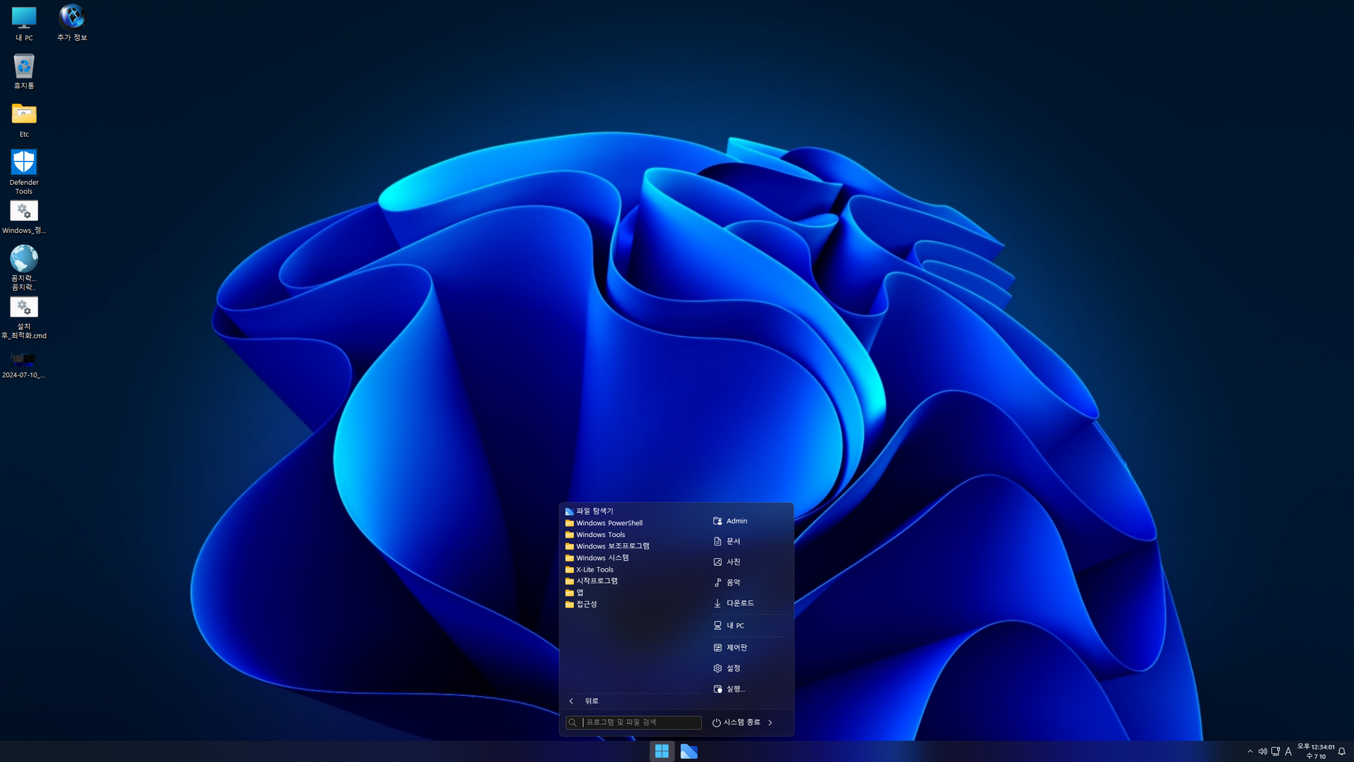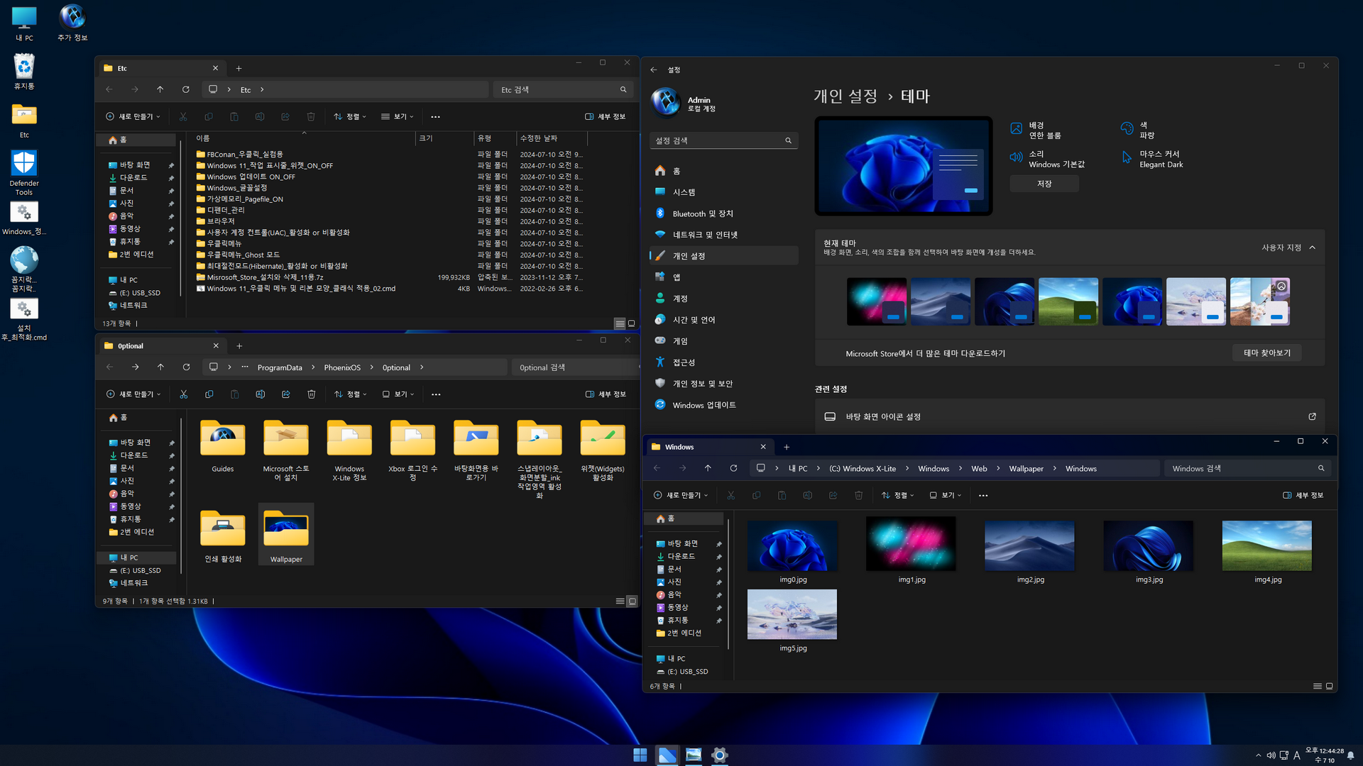 윈도우 설치는 디펜더 사용유무로 2 가지 에디션을 선택할 수 있습니다. 오프라인 한글화 작업이라, 제작자 무봉인 윈도우의 한국어 설정을 일부 마무리할 수 없었습니다. 한국어 설정을 위해 첫 바탕화면 진입 후에는 바로 배치파일이 실행되고, 10초 후 재부팅됩니다.