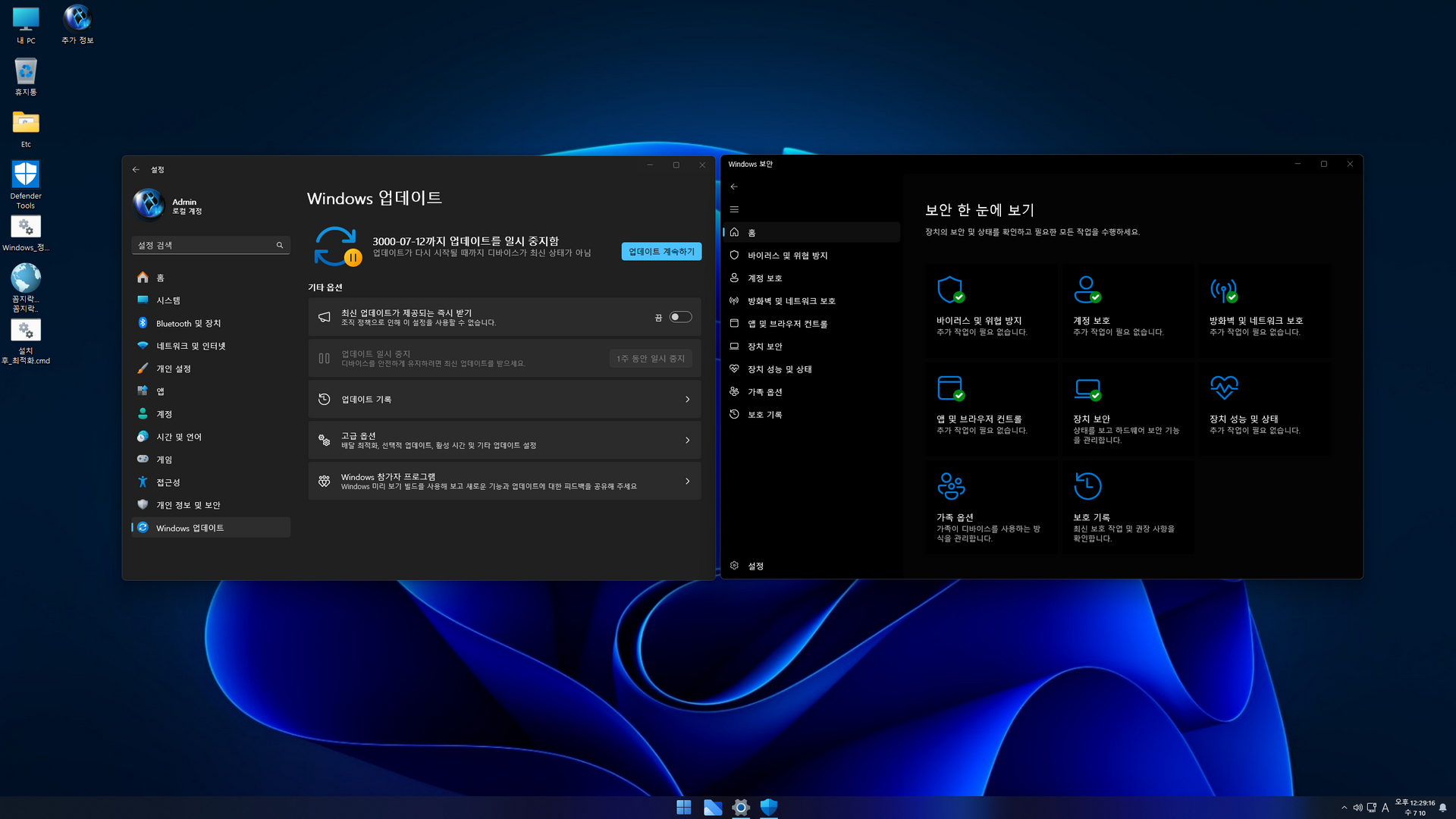 - 자동 업데이트 비활성화(3000년까지 업데이트 일시 중지)