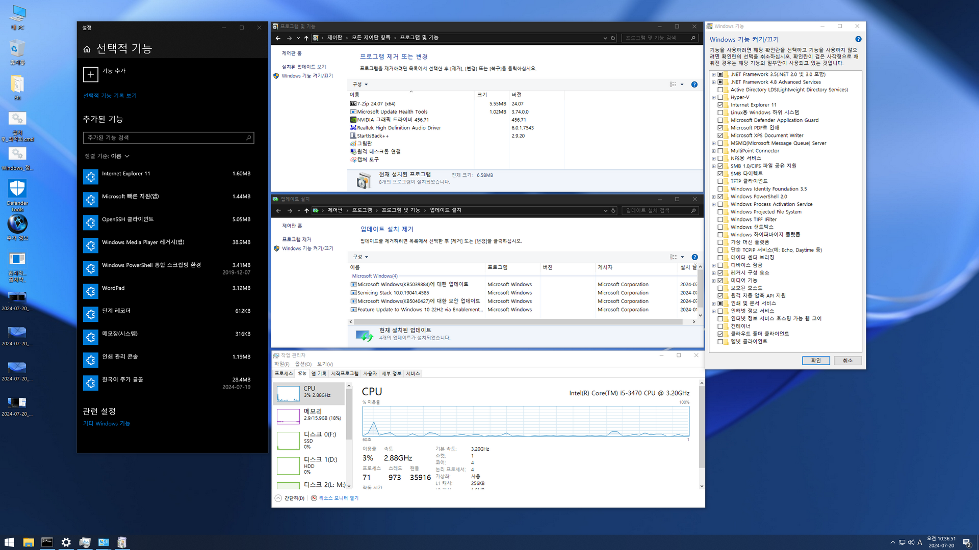 - 닷넷 3.5 / SMB1.0 / 레거시 구성 요소 기능 활성화