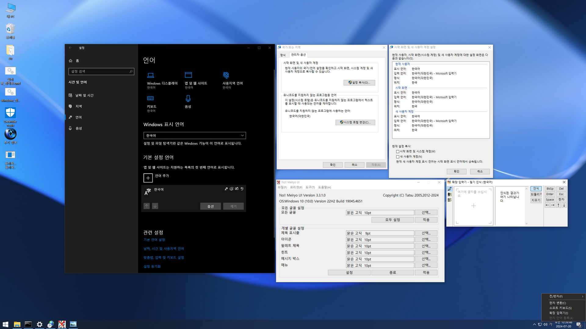 FBConan님 19045.3930 버전에 누적 업데이트 KB5040427(19045.4651)를 통합하여 한글화 작업을 마무리했습니다.
