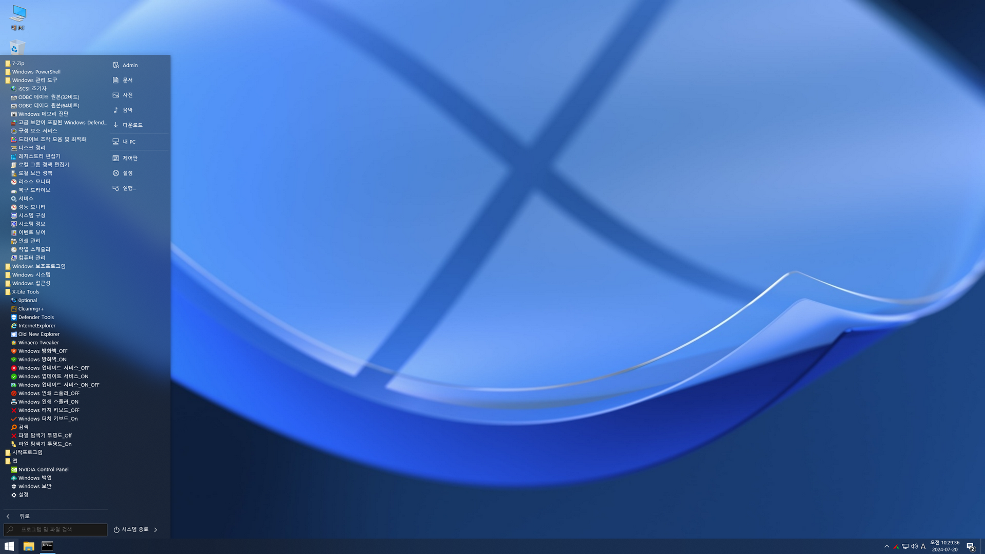 우클릭 메뉴 '새로 만들기 → 텍스트 문서' 추가우클릭 메뉴 '미리보기' 추가작업표시줄 정리제작자 일부 추가 프로그램 정리