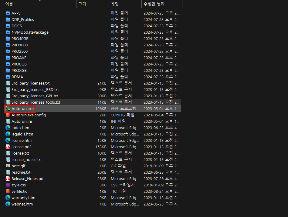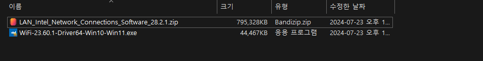 - 버전 : LAN_Intel_Network_Connections_Software_28.2.1 및 WiFi-23.60.1-Driver64-Win10-Win11