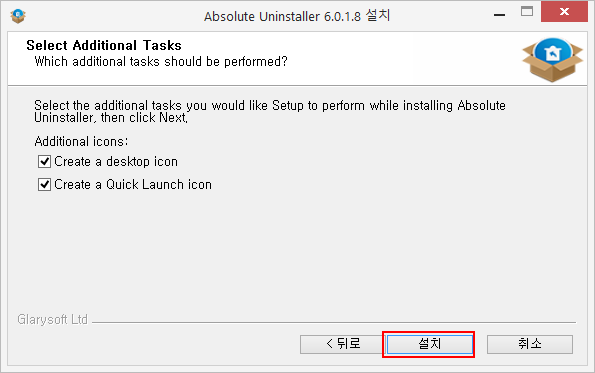- 추가 작업(바탕화면 및 시작메뉴에 바로가기 아이콘 생성)을 설정하고 '설치'를 클릭합니다.