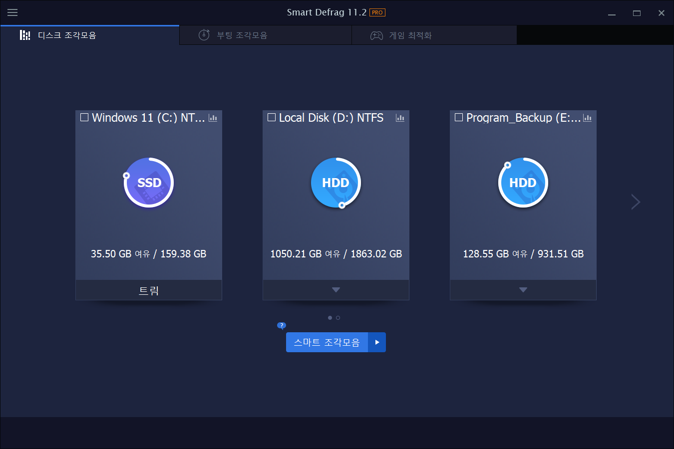 Smart Defrag는 하드디스크 / SSD를 조각 모음하여 최고의 성능을 발휘할 수 있는 하드디스크 조각 모음 소프트웨어입니다. 하드 드라이브의 성능을 극대화할 수 있도록 설계된 안정적이고 사용하기가 편리합니다. 조각 모음만 제공하는 다른 도구와 달리 SSD 트리밍, 부팅 시간 조각 모음, 게임 최적화 등의 기능을 제공합니다.