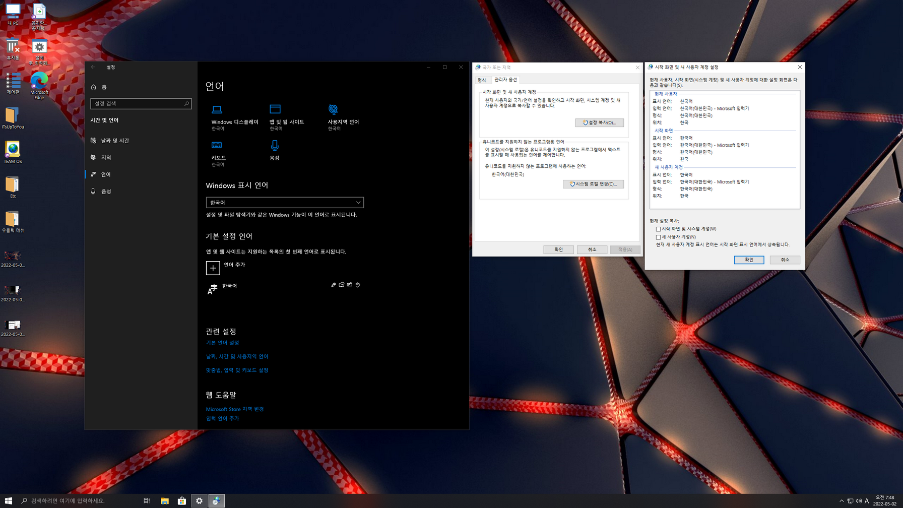 영어 재설치가 가능하며, WinSXS 폴더가 정리가 안된 한글화 윈도우입니다. 설치 시, 첫 화면에 일부 영어가 나오고, 엣지 설치때문에 약간의 버벅임이 있습니다.